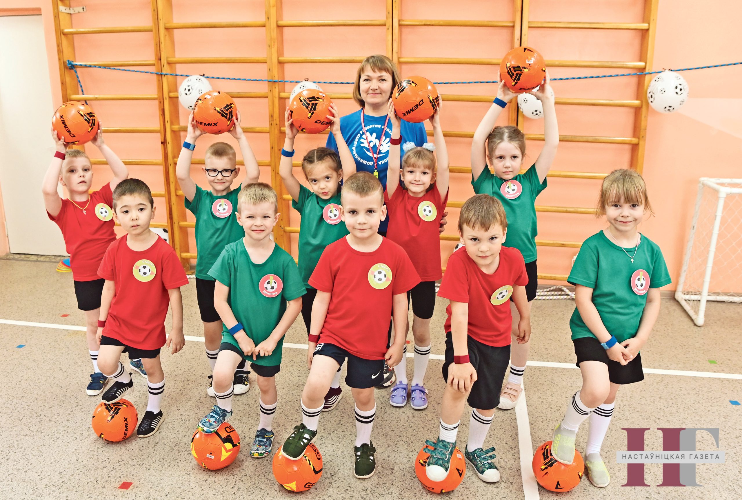 В дошкольном центре развития ребенка № 3 Витебска уже второй год реализуется проект, благодаря которому дети с 5 лет овладевают навыками игры в футбол. Мальчики и девочки три раза в неделю посещают занятия, на которых тренируют удары по мячу, его ведение и приемы передачи, и даже устраивают мини-матчи командами 2 на 2 или 3 на 3 игрока. В течение года тренировки проходят в спортзале, а в ясные летние дни переносятся на присадовскую территорию. Здесь устанавливаются переносные футбольные ворота, конусы, фишки, и ребята с радостью занимаются на свежем воздухе.
