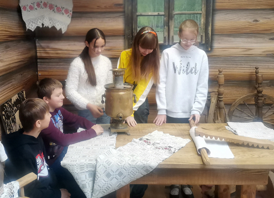 У музеі пакуль што адзін раздзел — “Беларуская хата”. У хуткім часе мы плануем адкрыць яшчэ адзін — “Ільнаводства і ткацтва”. Падрыхтаваныя экскурсаводы знаёмяць з прадметамі побыту, з уладкаваннем хаты, промысламі беларусаў. Самая прыемная ацэнка вучняў пры першым наведванні: “І ў нашай школе такое ёсць?!” Гэта і адкрыццё, і здзіўленне, і радасць новых ведаў, і гордасць за сваю школу, і, здараецца, успамін пра сваякоў у вёсцы. У звычайным музеі дзіця — толькі пасіўны сузіральнік, а тут суаўтар, творца. Прычым не толькі яно само, але і яго сваякі.