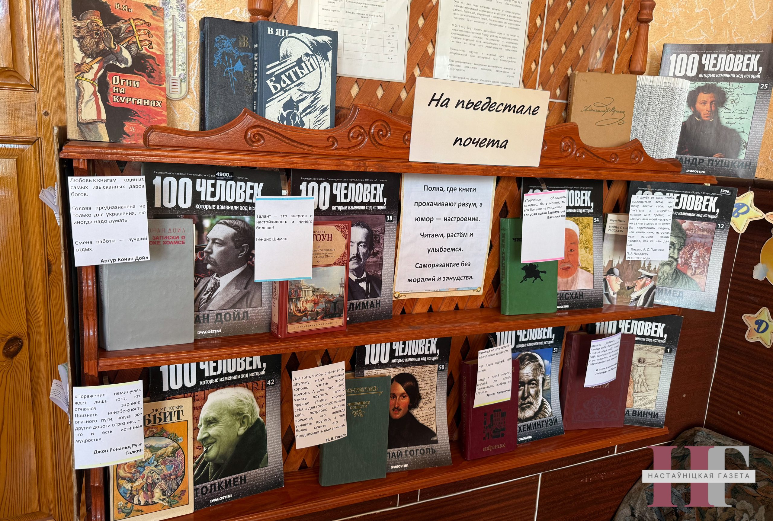 У бібліятэцы Наталля Паўлаўна імкнецца стварыць атмасферу, якая прывівае любоў да чытання. Гэта не толькі магчымасць пагартаць папулярныя кнігі з адкрытай паліцы. Тут заўсёды арганізаваны тэматычныя выставы, ёсць стэлаж з літаратурнымі каштоўнасцямі пад шклом.