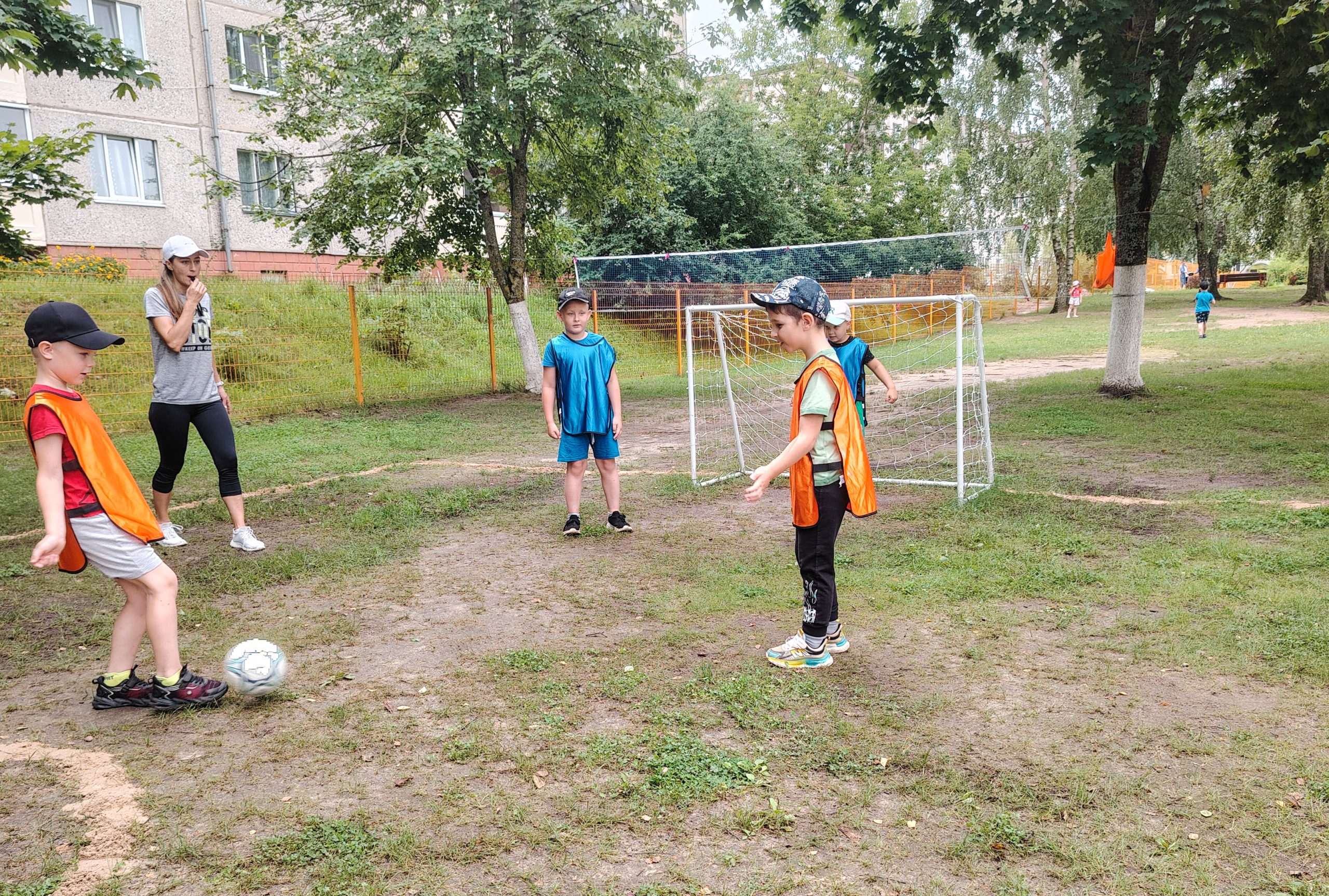 В теплые летние дни в тени полувековых берез для воспитанников детского сада обустроены площадки для разных спортивных активностей: игры в бадминтон, футбол, городки, эстафетного бега. Есть тут и экологическая тропа, по которой полезно прогуляться без обуви. Поблизости разместилось импровизированное футбольное поле с разметкой из песка, где пятилетние и шестилетние малыши учатся пасовать и метко бить по мячу. Выходя на прогулку, ребята с удовольствием забивают голы, чувствуя себя Месси или Роналду.
