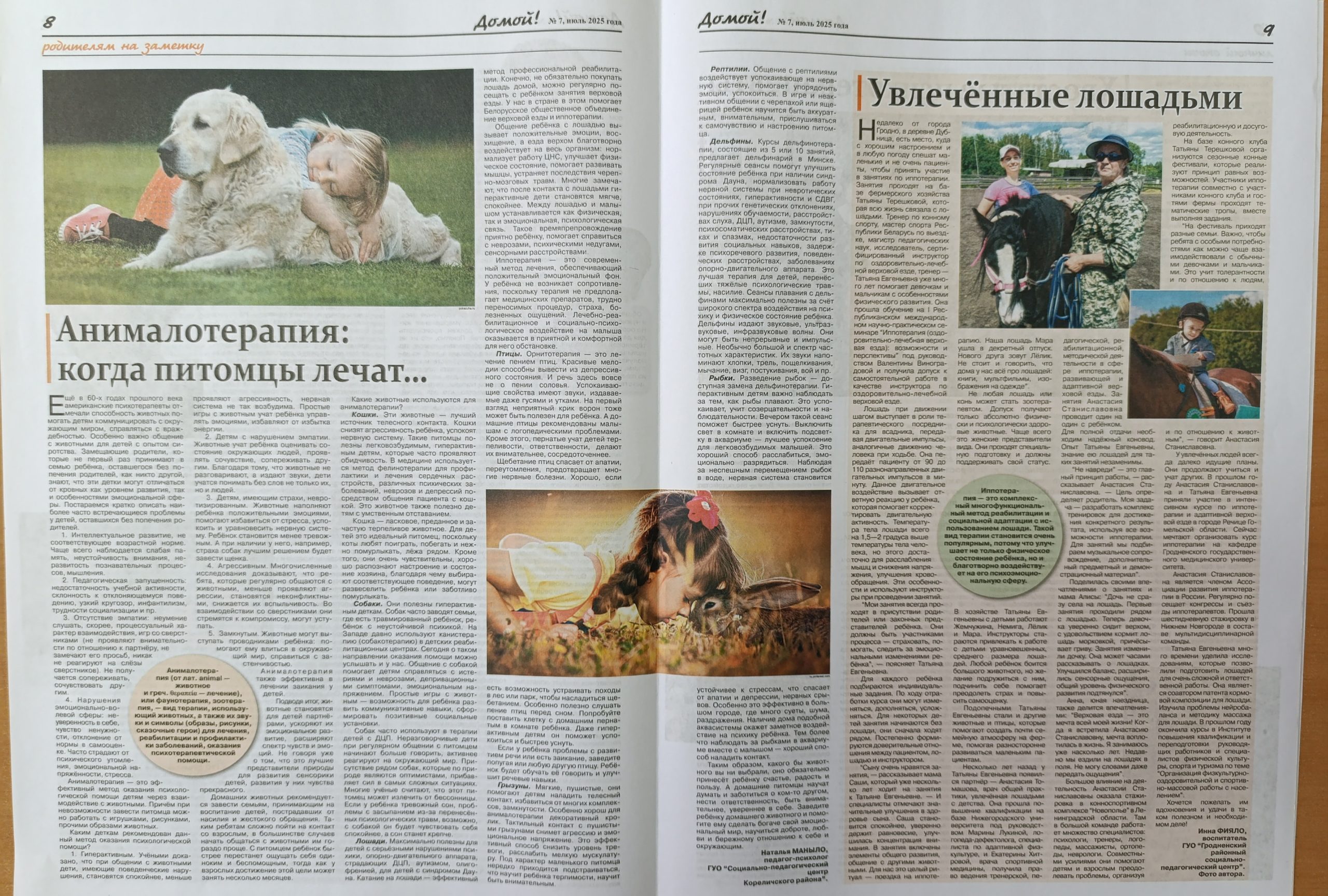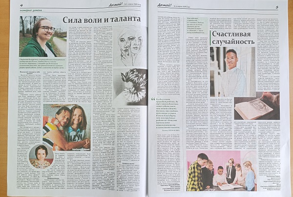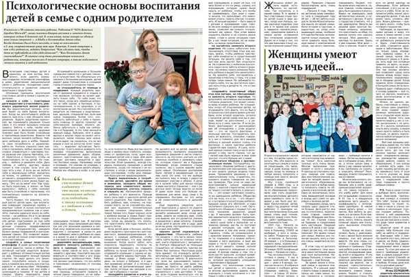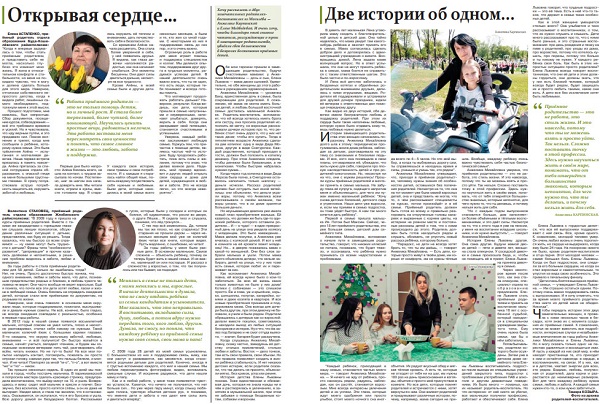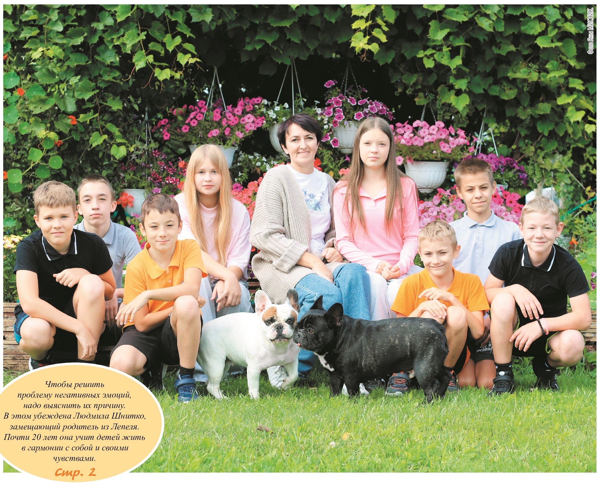 На первой полосе — родитель-воспитатель из Лепеля Людмила Шнитко с детьми. Почти 20 лет она является замещающим родителем и учит воспитанников с особой жизненной историей жить в гармонии с собой и своими чувствами.