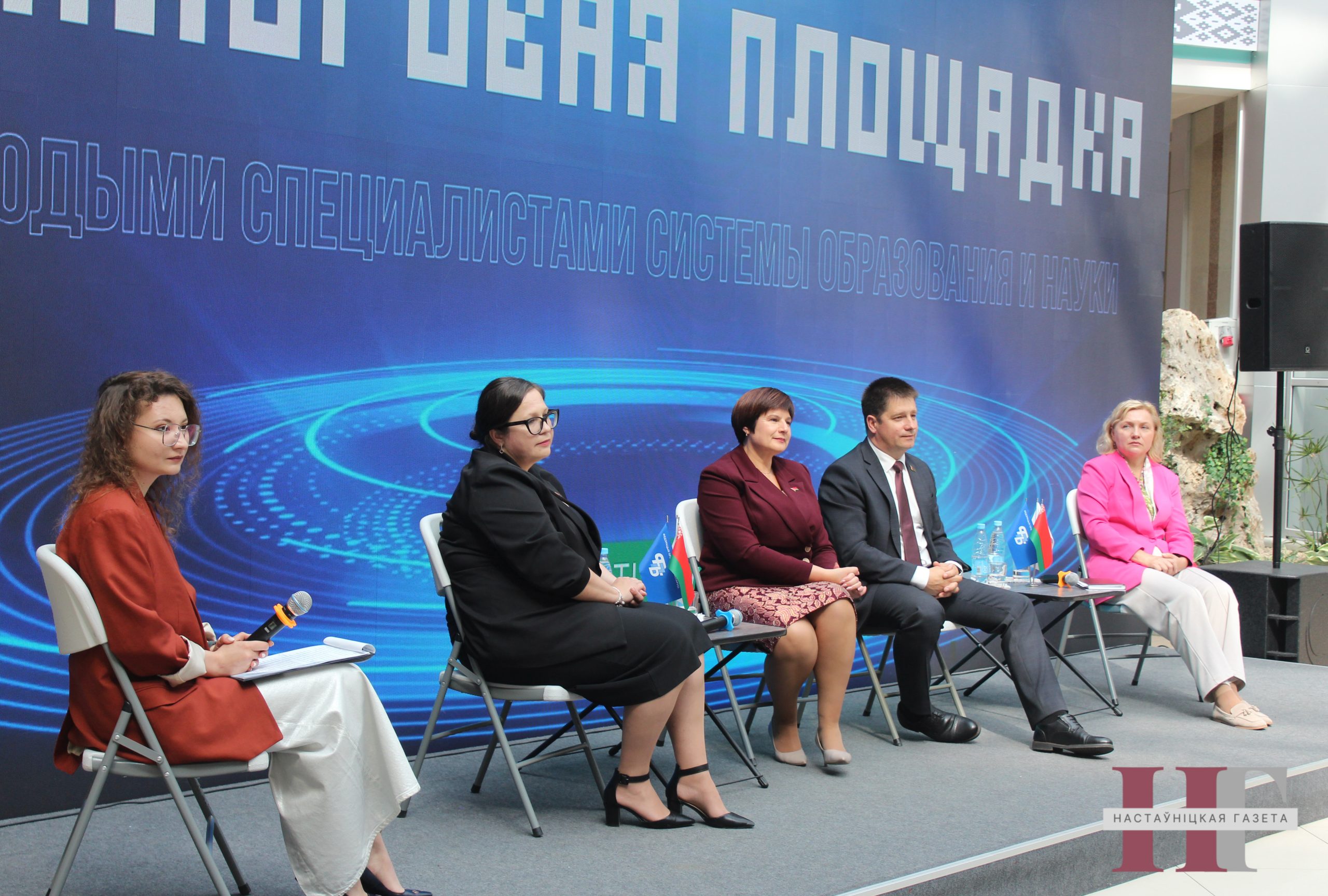 После торжественной презентации участников ждала диалоговая площадка, на которой обсудили нововведения в системе образования, гарантии и льготы для молодых педагогов, закрепляемость кадров. Также спикеры высказали свое мнение по поводу того, сможет ли искусственный интеллект заменить работников.