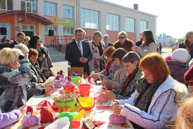 Настальгічныя ноткі кранулі душу і ў музеі “Дзяцінства”, які размяшчаецца ў сярэдняй школе № 2 Нароўлі. Варта сказаць, што гэты семінар па харчаванні быў асаблівым для намесніка начальніка ўпраўлення адукацыі Гомельскага аблвыканкама Ж.А.Ждановіч: менавіта ў Нароўлі прайшлі яе школьныя гады, тут пачынаўся яе педагагічны шлях. Родная школа Жанны Анатольеўны — сярэдняя школа № 2 — у гэтым годзе была адкрыта пасля рэканструкцыі. Адноўлены будынак прываблівае яркімі фарбамі і шумлівымі бярозамі. А на шырокай пляцоўцы перад школай разгарнуўся сапраўдны восеньскі кірмаш. Тут можна было не толькі паглядзець на прыгожыя рэчы, але яшчэ і паўдзельнічаць у майстар-класах. Так, педагогі дадатковай адукацыі разам са сваімі выхаванцамі дэманстравалі тое, чым яны займаюцца ў гуртках і аб’яднаннях па інтарэсах. Але больш за ўсё прываблівалі майстар-класы прыёмных бацькоў. Іна Матузка, Інеса Соцкая і Людміла Крукоўская разам са сваімі дзеткамі паказвалі тэхніку выкладвання карцін з фісташак, роспісу па шкле і алмазнай вышыўкі. Побач выхавальнік раённага сацыяльна-педагагічнага цэнтра Аксана Альховік вучыла прыёмных бацькоў ствараць ляльку-абярэг.