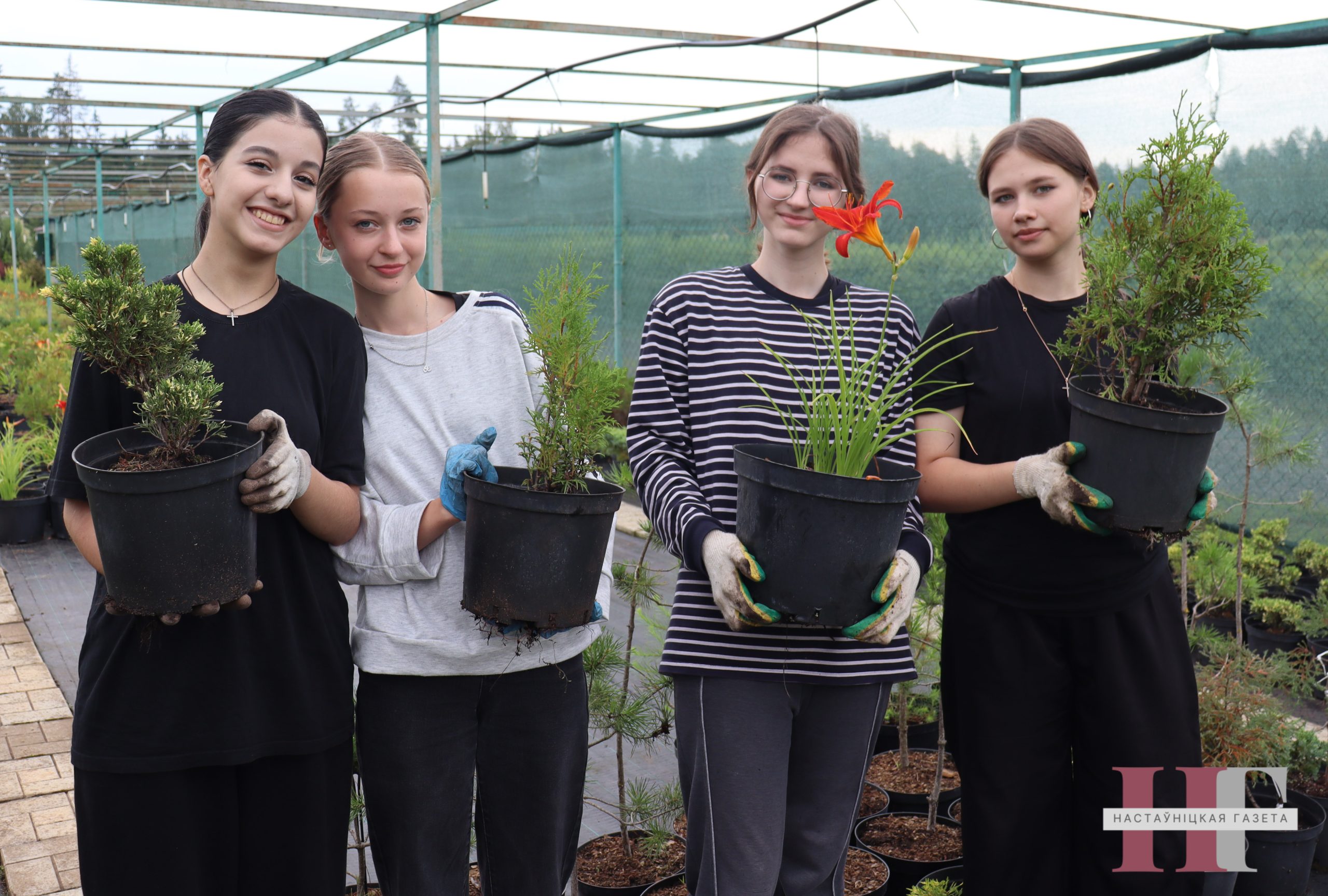 Дабіраюцца юныя работнікі ў лясгас на веласіпедах. Першыя пяць дзён іх фронт работы — вялікая цяпліца, дзе падрастаюць у гаршках пераважна іглічныя саджанцы: туі, елкі, ядловец.