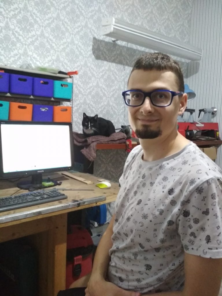 “Нядаўна пазнаёміўся з вуглевалакном — гэты матэрыял вельмі трывалы, добра апрацоўваецца. І такі сучасны матэрыял мог бы быць кампаньёнам жывому і цёпламу дрэву. Такі сімбіёз старажытнасці, архаікі і ультрасучаснага матэрыялу падабаецца і мне, і пакупнікам. У гэтым кірунку я хацеў бы рухацца. Акрамя таго, хацеў бы рабіць выключна штучны тавар па папярэднім заказе пакупнікоў”.