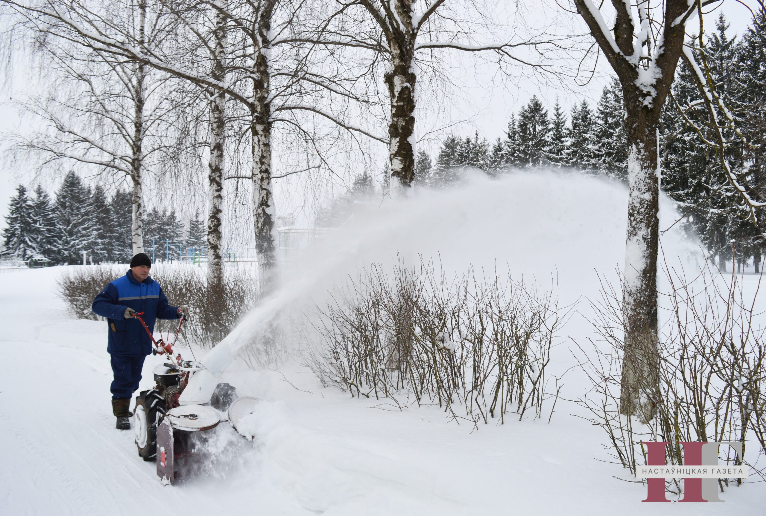 Где технике сложно проехать, там снег убирают проверенным дедовским способом. По словам директора школы Сергея Зубовича, к зиме здесь заранее подготовились. В прошлом году районный центр по обеспечению деятельности бюджетных организаций выделил учреждению партию лопат для уборки снега. Заместитель директора по хозяйственной работе Людмила Асмаловская накануне сезона докупила дополнительный инвентарь, плюс есть мотоблок: для поддержания порядка вполне достаточно.