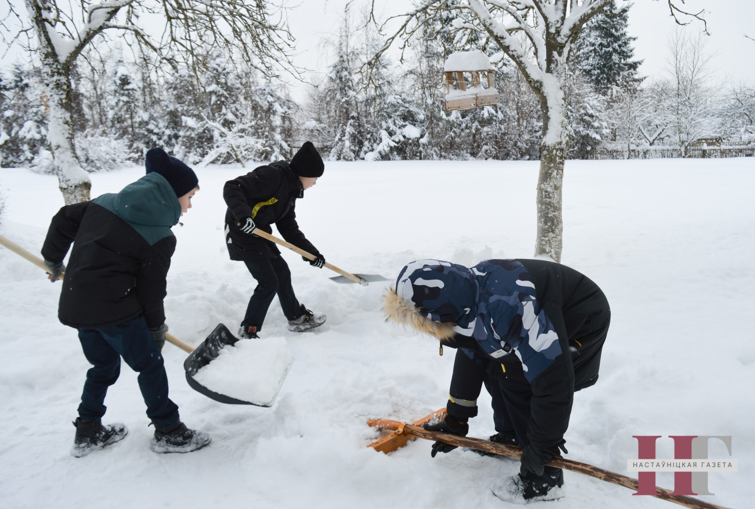 — Для зимы мороз и снег — обычная погода, — прокомментировал С. Зубович. — Возвращение климатической нормы вызывает больше позитивных эмоций, чем наоборот. Конечно, «Улли» всем добавил хлопот. Но, по-моему, странно зимой жаловаться на снегопады. У нас 107 учащихся на подвозе и 36 приезжают на рейсовом автобусе. Логично, что, кроме своей территории, мы помогаем сельсовету с уборкой снега возле остановки общественного транспорта и на подъездах к школе. Потому как сами заинтересованы, чтобы школьный автобус мог проехать без проблем, спокойно продукты завезти. А главное, чтобы детям и педагогам было комфортно дойти, удобно передвигаться по территории.