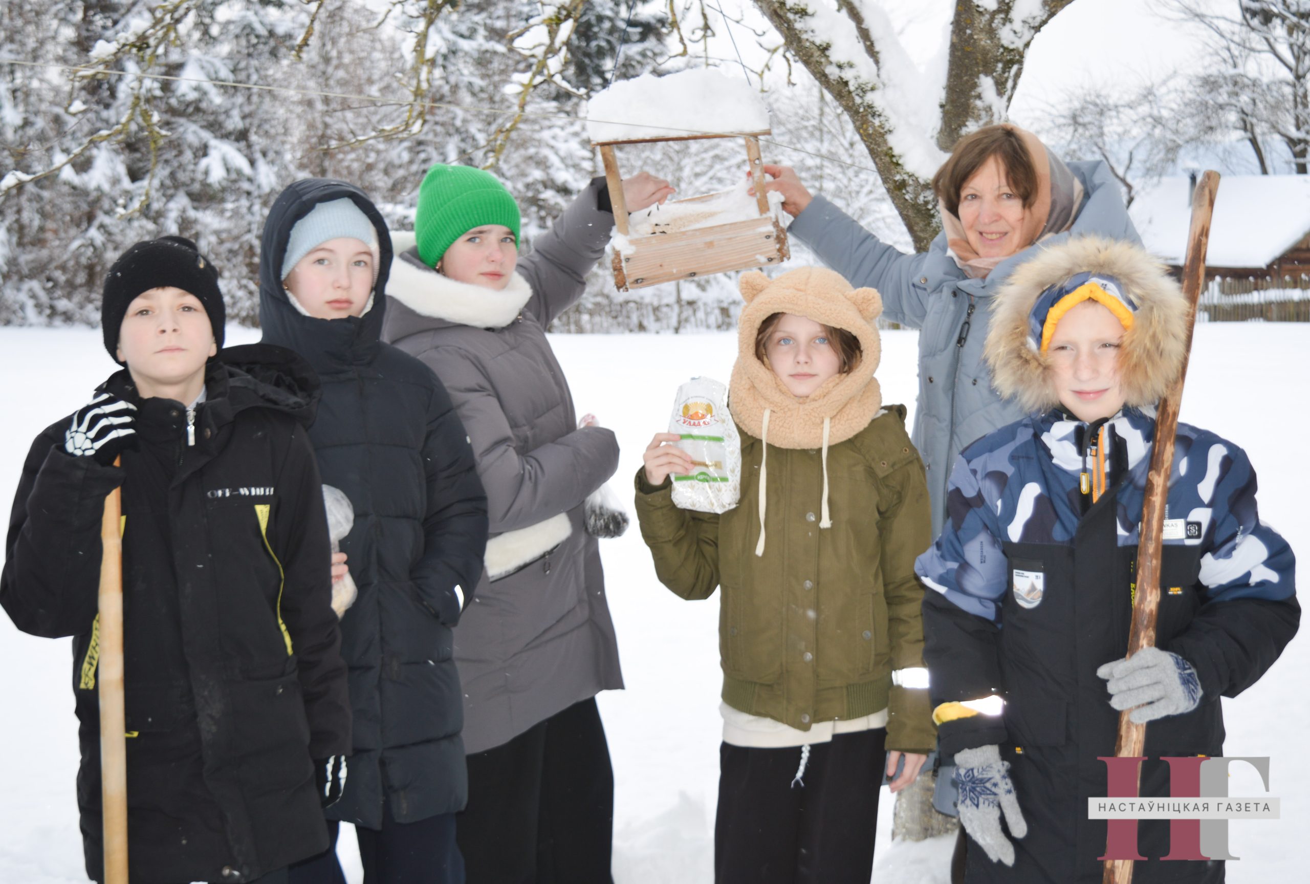 Возле школы заметила группку детей во главе с педагогом Галиной Кирилловой: они подсыпали корм в аккуратные птичьи домики. Кормушки для пернатых изготавливают учащиеся на занятиях объединения по интересам под руководством учителя трудового обучения Александра Платова. Развешано около 20 кормушек, за которыми ребята заботливо приглядывают.