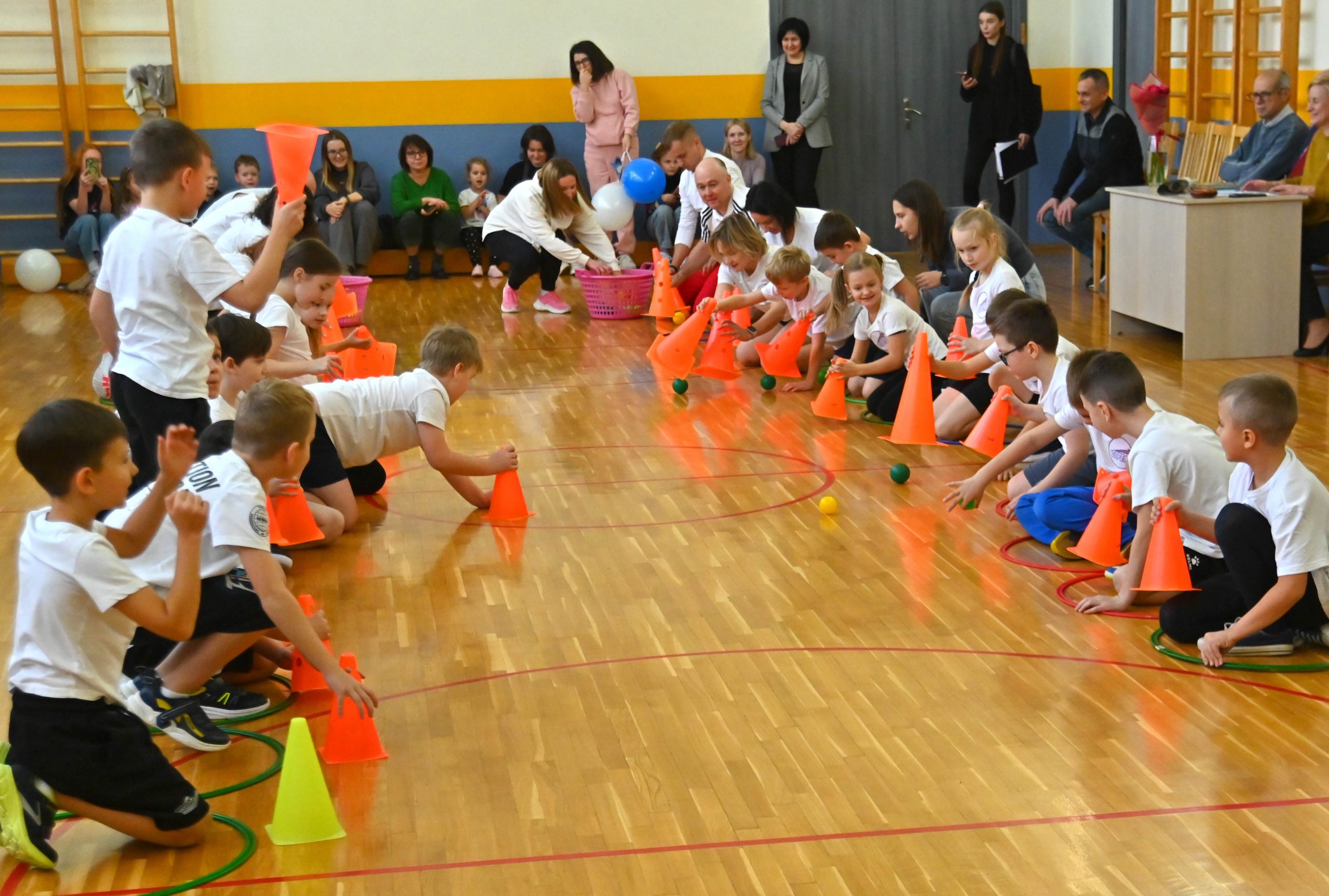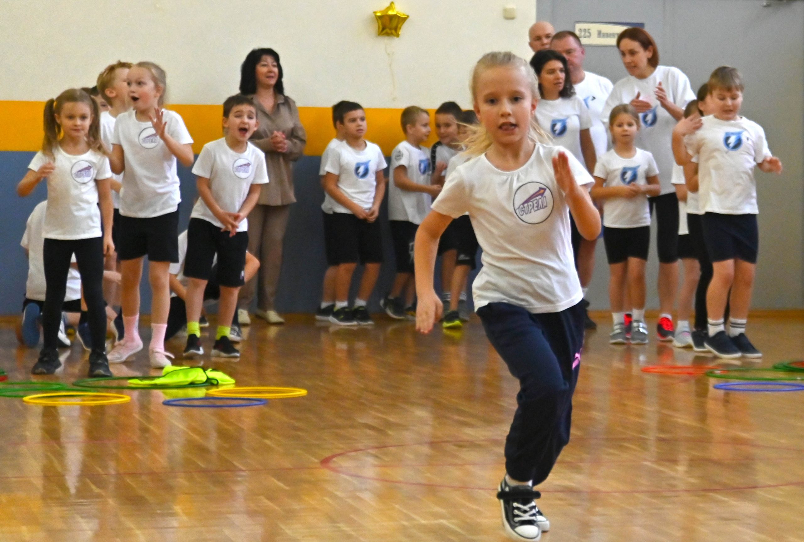 Отправляемся в спортзал, где все готово к празднику под бодрым названием «Стартуют все». В данном случае это ученики 2 «А» и 2 «Б» классов, которых поделили на 2 команды — «Молния» и «Стрела». А побороться за победу на старт вышли не только школьники, но и их родители, что придавало соревнованиям еще больше азарта и драйва. Болельщиков в зале также хватало: папы, мамы, бабушки, дедушки, братья и сестры пришли поддержать спортсменов.