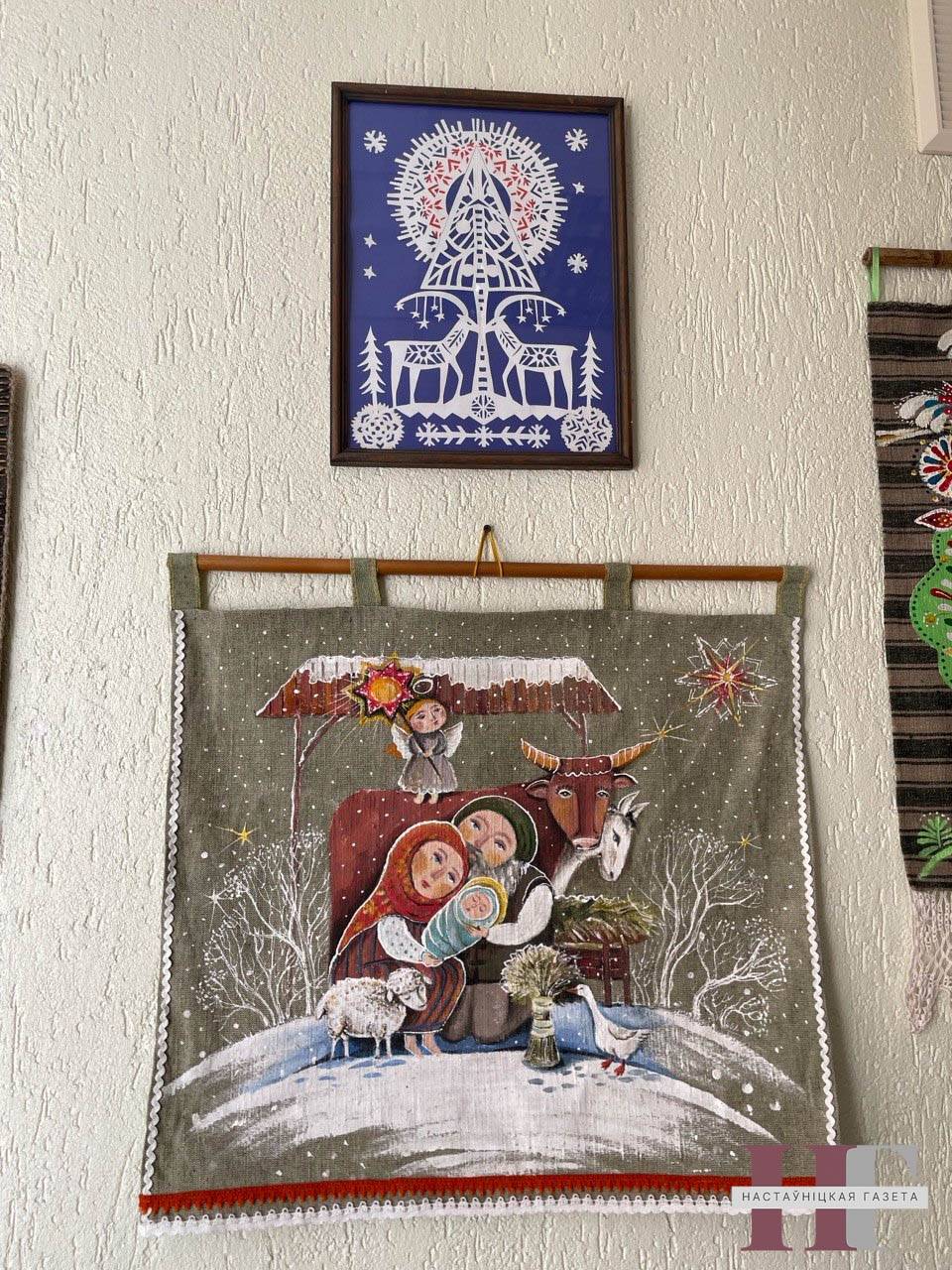 «Адчуваеце радасць у нашых карцінах?.. Вось так мы рыхтуемся да свят!» — з усмешкай сустракае гасцей гаспадыня майстэрні. Сама яна — не мясцовая, каханне прывяло ў Ганцавічы з багатага на таленты Івянца. Таго, тлумачыць ахвотна, дзе робяць смачныя цукеркі, дзе моцныя традыцыі ганчарства, мастацкай керамікі, ткацтва. З павагай да народных традыцый сёння ўжо на Палессі працуе Марына Скурат.