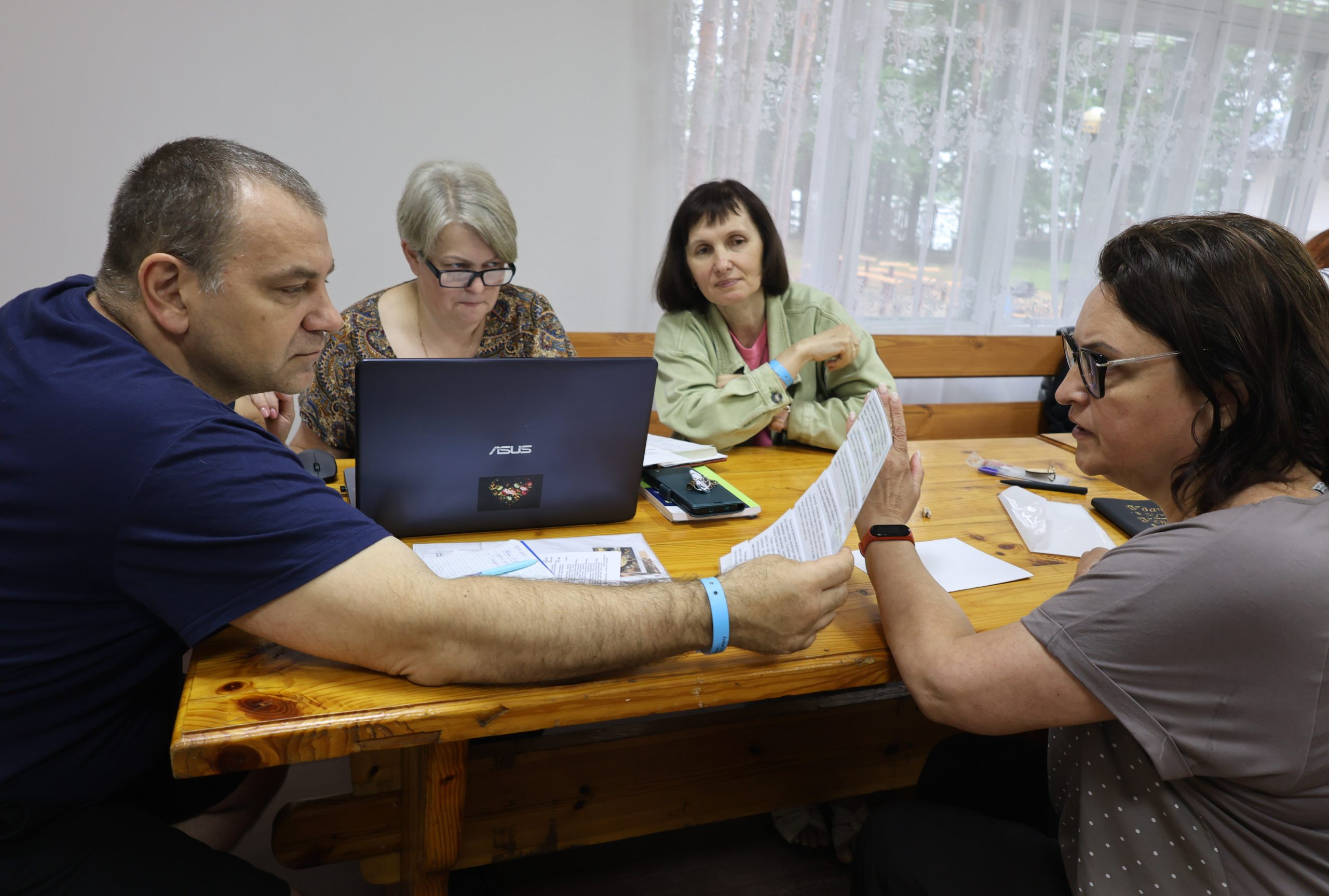 Лідзія Аўсюк, Вольга Кіслова і Аксана Свістунова прапанавалі групам тэксты і дэманстравалі розныя формы работы з імі для лепшага засваення, аналізу, ацэнкі і інтэрпрэтацыі інфармацыі. Разам з Аксанай Свістуновай педагогі запаўнялі рабочы ліст, дзе дэталёва прапрацоўвалі лексіку тэксту, а затым працавалі над развіццём маўлення. Цяжкасці выканання заданняў яны прааналізавалі разам з Лідзіяй Аўсюк.