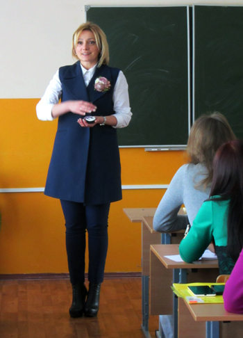Кіраўнік гарадской школы маладога настаўніка Ніна Дзмітрыеўна Хацян звярнулася да аўдыторыі з такімі словамі: