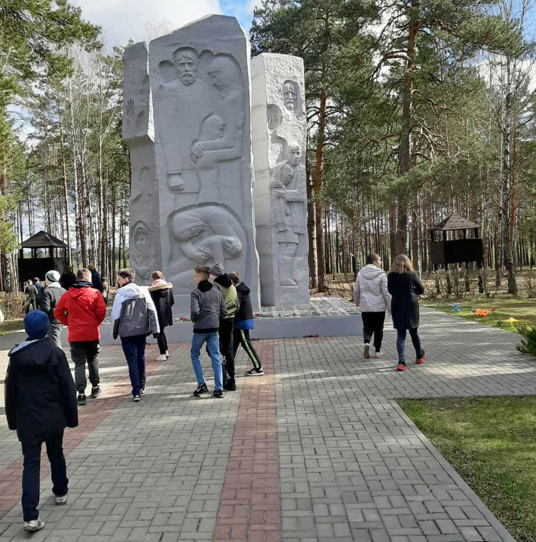Удзельнікі ваенна-патрыятычнага клуба “Зубр” сярэдняй школы № 14 Мазыра падчас наведвання мемарыяльнага комплексу