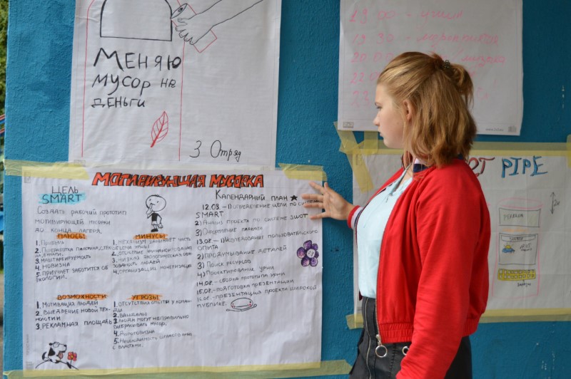 У адной з груп узнікла ідэя стварэння тэлеграм-бота для папулярызацыі Беларусі сярод замежных турыстаў. Іншая група прыдумала інтэлектуальную урну, якая выдае грошы за адсартаванае смецце, а на занятках па робататэхніцы нават стварылі прататып такой прылады. У канцы змены кожная група прэзентавала свой праект інвестарам на англійскай мове.