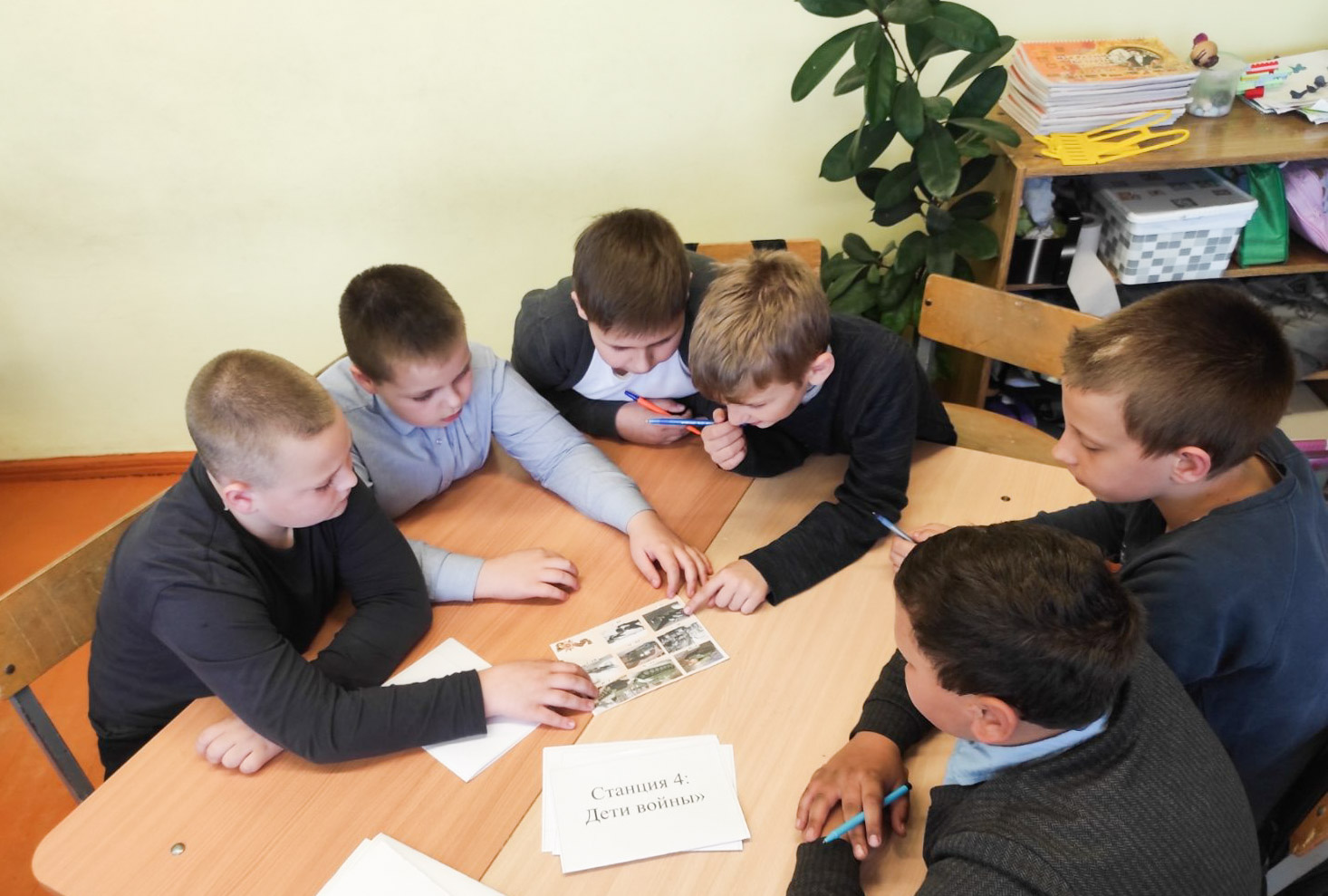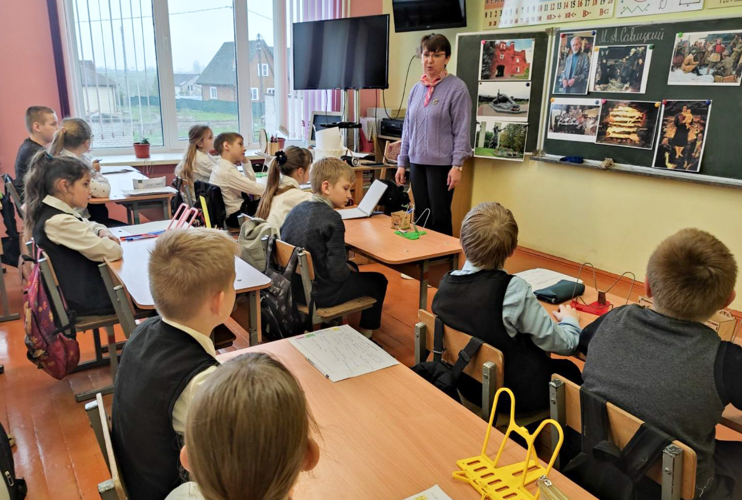 — Я принимала участие в двух мастерских. Темой первой была «Великая Отечественная война». В начале урока мы ознакомились с картинами белорусского художника Михаила Савицкого. Распечатывала их в большом формате, чтобы были видны детали. Рассказала детям, что символизируют полотна, какие чувства и эмоции вдохновили художника на их создание. Сообщила о том, что автор сам прошел через концлагерь. Честно, даже не ожидала, что они так внимательно будут слушать, участвовать в обсуждении. Далее ознакомила их с белорусскими памятниками, посвященными войне. Для ребят стало открытием, что Курган Славы создавался всей страной. Не обошли вниманием и менее известные монументы, и скульптурные комплексы. Послушали песни военных лет. Ученики удивились, узнав, что песня «Вставай, страна огромная» является гимном Великой Отечественной войны. Когда рассматривали картину, где изображены красноармейцы во время отдыха, поинтересовалась, какими музыкальными инструментами пользовались солдаты? Тогда ведь не было мобильных телефонов с интернетом и наушниками, нужно было самим петь, играть, чтобы отвлекаться. Дети не растерялись, назвали губную гармошку, гитару, балалайку. В конце урока все вместе делали большую открытку ко Дню Победы. Получился насыщенный и продуктивный урок.