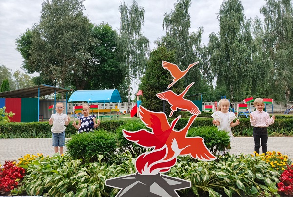 Каждый элемент в оформлении цветника отражает глубокий смысл, а основной акцент композиции сделан на декоративной фигуре «Вечный огонь Победы»: пламя символически переходит в стаю журавлей, олицетворяя души павших солдат. Цветник Победы не только украсил двор, но и принес диплом І степени на районном этапе республиканского смотра-конкурса территорий учреждений образования в номинации «Эстетика территории учреждения образования. Великая Победа».