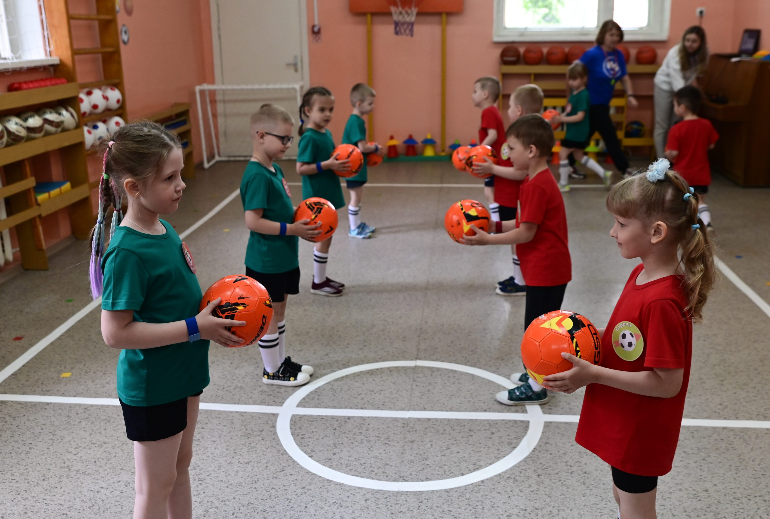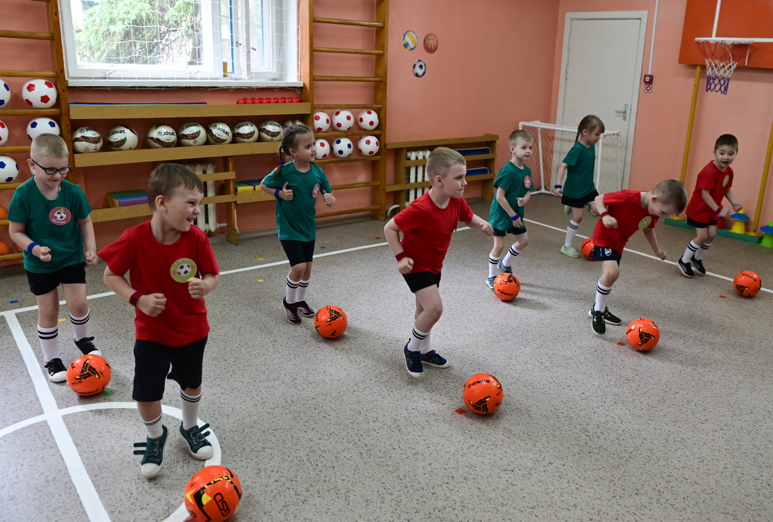 — Конечно. Даже малыши из средней группы. А у старших, тех, кто занимается второй год, получается еще лучше. Безусловно, упор больше делается на общефизическое развитие, но футбольные навыки они тоже развивают. Есть детки, которые посещают спортивные объединения по интересам. Роман, например, ходит в футбольную секцию в городе. Его родители отвели туда, по-моему, лет в 5. В старшей группе они уже играют в футбол 2х2 или 3х3. Мы ставим футбольные ворота, даем мячи, а если нужно тренировать ведение, расставляем фишки.