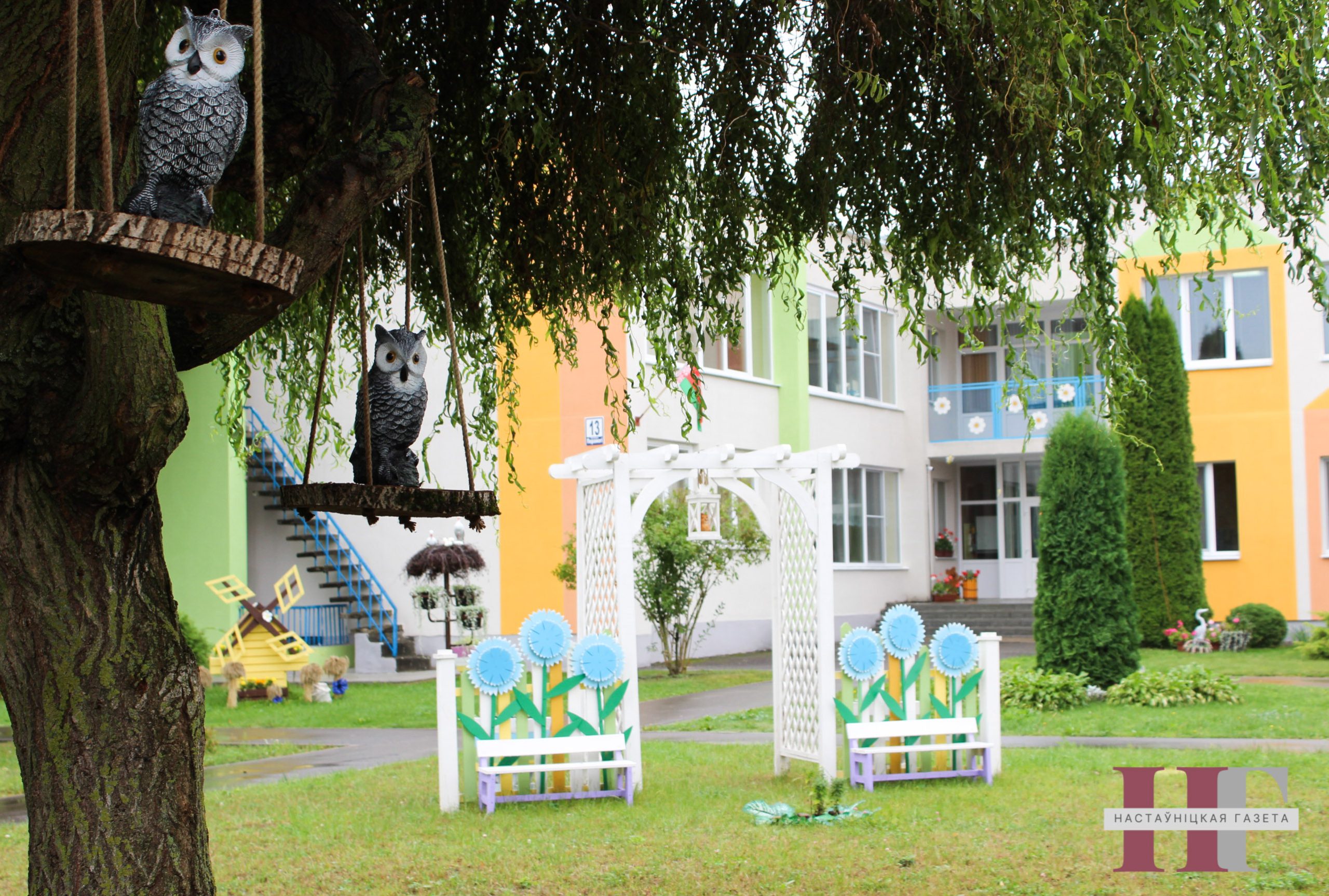 Она добавила, что каждый член коллектива на протяжении ряда лет внес свою лепту в благоустройство территории дошкольного учреждения, которая сегодня напоминает парк с интересными фотозонами, где обыгрывается национальная тематика, а также сказочные мотивы. С предстоящим праздником ассоциируется бутафорная мельница, которую дополняют небольшие декорированные лентами снопы из зерновых культур.