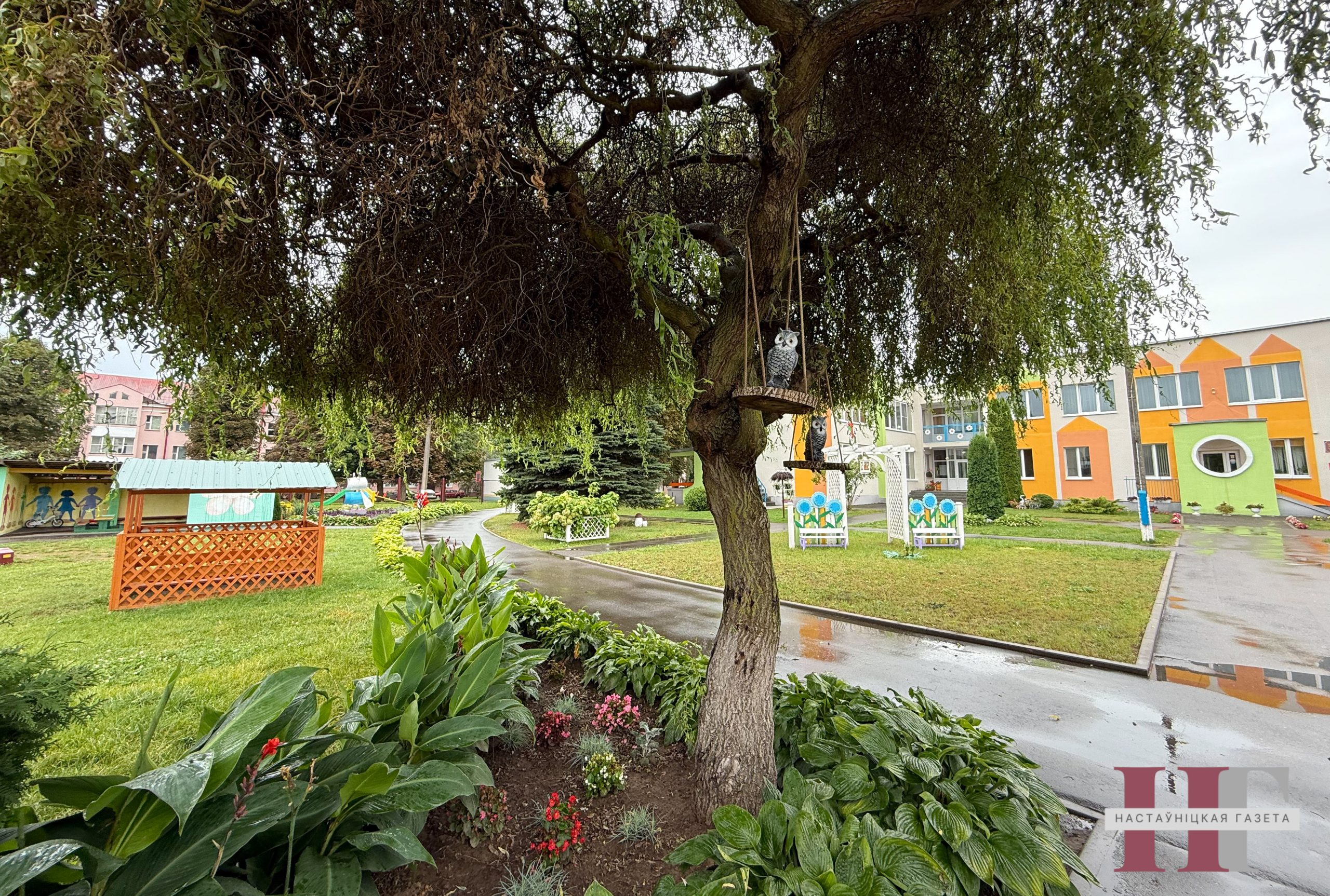 К областным «Дожинкам» и новому учебному году была благоустроена и территория дошкольного учреждения: высажено более тысячи цветов, созданы интересные композиции-фотозоны с использованием элементов государственной символики, выложены тротуарной плиткой дорожки и детсадовская площадь Государственного флага.