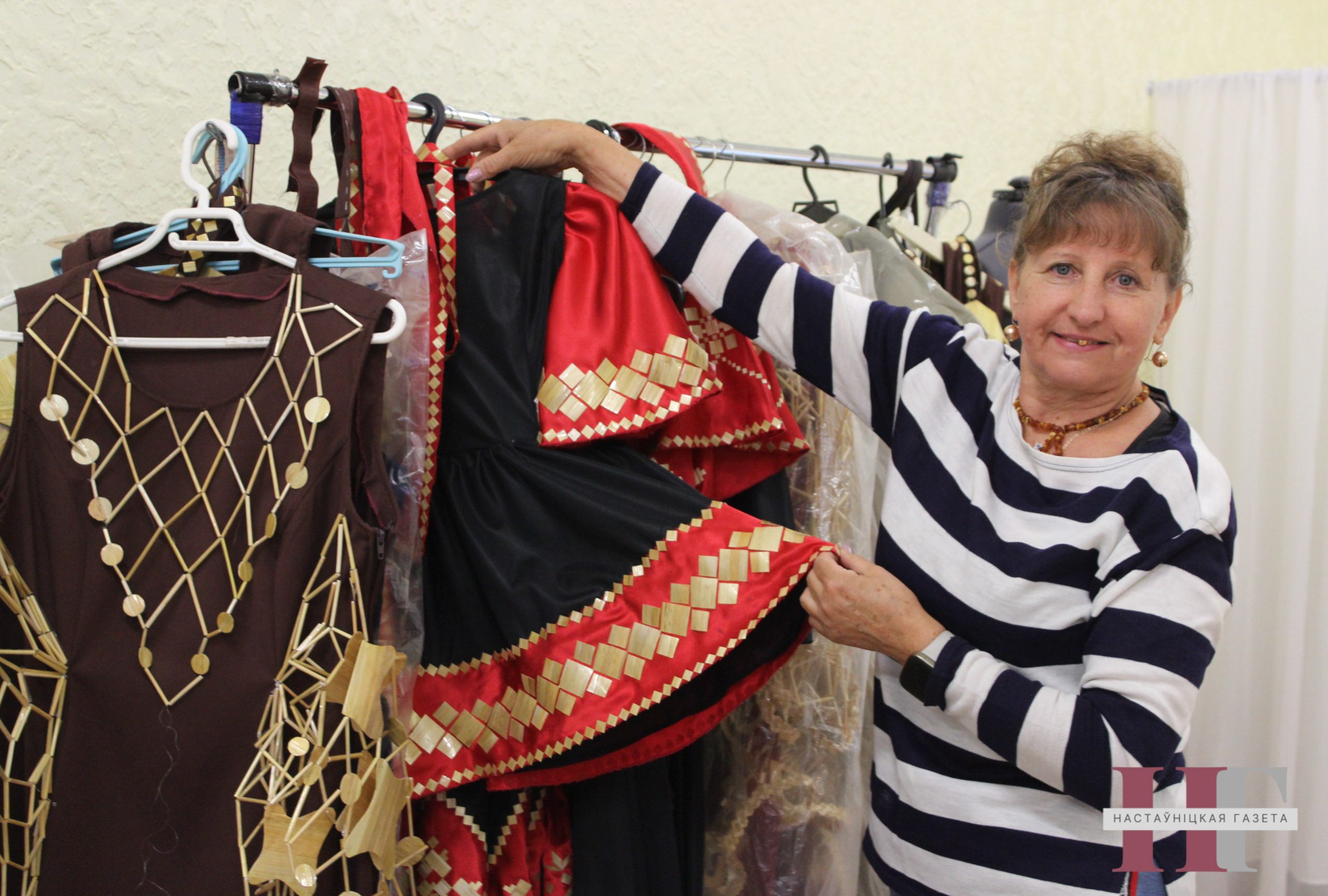 — Во время областного праздника представим новую коллекцию платьев с декором из соломки, — приоткрывает нюансы творческой задумки мастер с тридцатилетним стажем и руководитель заслуженного любительского коллектива Алла Сурминова. — Для десяти платьев этот отделочный материал мы заготовили еще в прошлом году. Чтобы сполна представить, насколько это кропотливый труд, скажу, что десять больших снопов собирали вручную при помощи серпа, чтобы не повредить материал для декора. После этого не раз вымачивали для получения нужного оттенка и только затем приступили к созданию коллекции. В целом на это ушел практически весь прошлый учебный год, и, думаю, гости и жители Волковыска по достоинству оценят наши старания.