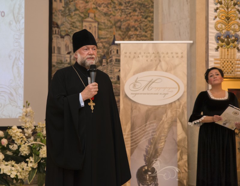 У зале прысутнічаў шаноўны настаяцель храма-помніка, кіраўнік Сінадальнага аддзела БПЦ па супрацоўніцтве са свецкімі ўстановамі адукацыі, протаіерэй Фёдар Поўны, які сказаў: “Успамінаюцца словы Фёдара Міхайлавіча: “Без зачатков положительного и прекрасного нельзя выходить человеку в жизнь из детства, без зачатков положительного и прекрасного нельзя пускать поколение в путь”. Вы, настаўнікі рускай мовы і літаратуры, перадаяце вучням вялікае багацце шырокай душы народа, якая ўмяшчае Бога. Калі наша слова ідзе з любячага сэрца, яно ўпрыгожвае свет. Калі яно да таго ж звернута да Духа Святога і праз яго шукае свой змест і сэнс, яно становіцца прарочым. Многія пісьменнікі і паэты ў шчырым духоўным парыве часта станавіліся прарокамі, бо спасцігалі сутнасць слоў, закладзеную ў іх ісціну, Боскі вобраз. Такім быў Дастаеўскі, які адкрыў для нас вельмі складаны ўнутраны свет чалавека — святы і грахоўны адначасова. Ён апісаў духоўны пошук з такой дзіўнай рэалістычнасцю, нібы чуў думкі ўсіх людзей. Значэнне слова, пісьменнасць і чысціня маўлення сёння — гэта згубленыя навыкі чалавецтва. Людзі пішуць з памылкамі, падтрымліваюць зносіны смайламі, думаюць абрыўкамі сэнсаў, падмяняюць паняцці. Вось чаму школа абавязана вучыць дзяцей гаварыць, падбіраць правільныя словы, адвучаць ад брыдкаслоўя, паказваць прыгажосць маўлення, тэкстаў паэтаў і празаікаў”.