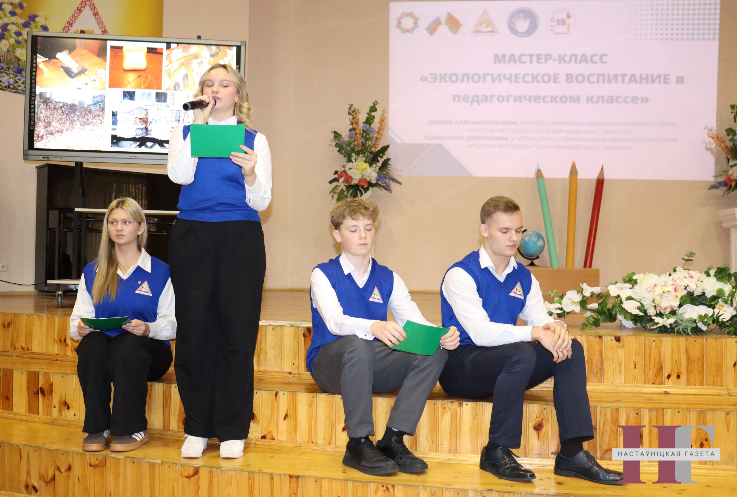 Праз прызму сваіх прадметаў і пазакласных мерапрыемстваў настаўніца хіміі настаўнік-метадыст Ала Долбік і настаўніца біялогіі настаўнік-метадыст Іна Яцына фарміруюць у вучняў педкласаў 14-й гімназіі экалагічную адукаванасць і культуру. Падчас дуэтнага майстар-класа яны расказалі, што гімназісты з’яўляюцца ініцыятарамі і ўдзельнікамі экалагічных мерапрыемстваў і акцый, ствараюць праекты, відэаролікі, малююць плакаты, выступаюць перад малодшымі школьнікамі, штогод становяцца прызёрамі гарадскога конкурсу па энергазберажэнні, дыпламантамі гарадскіх экалагічных конкурсаў навукова-практычных работ і экалагічных чытанняў.