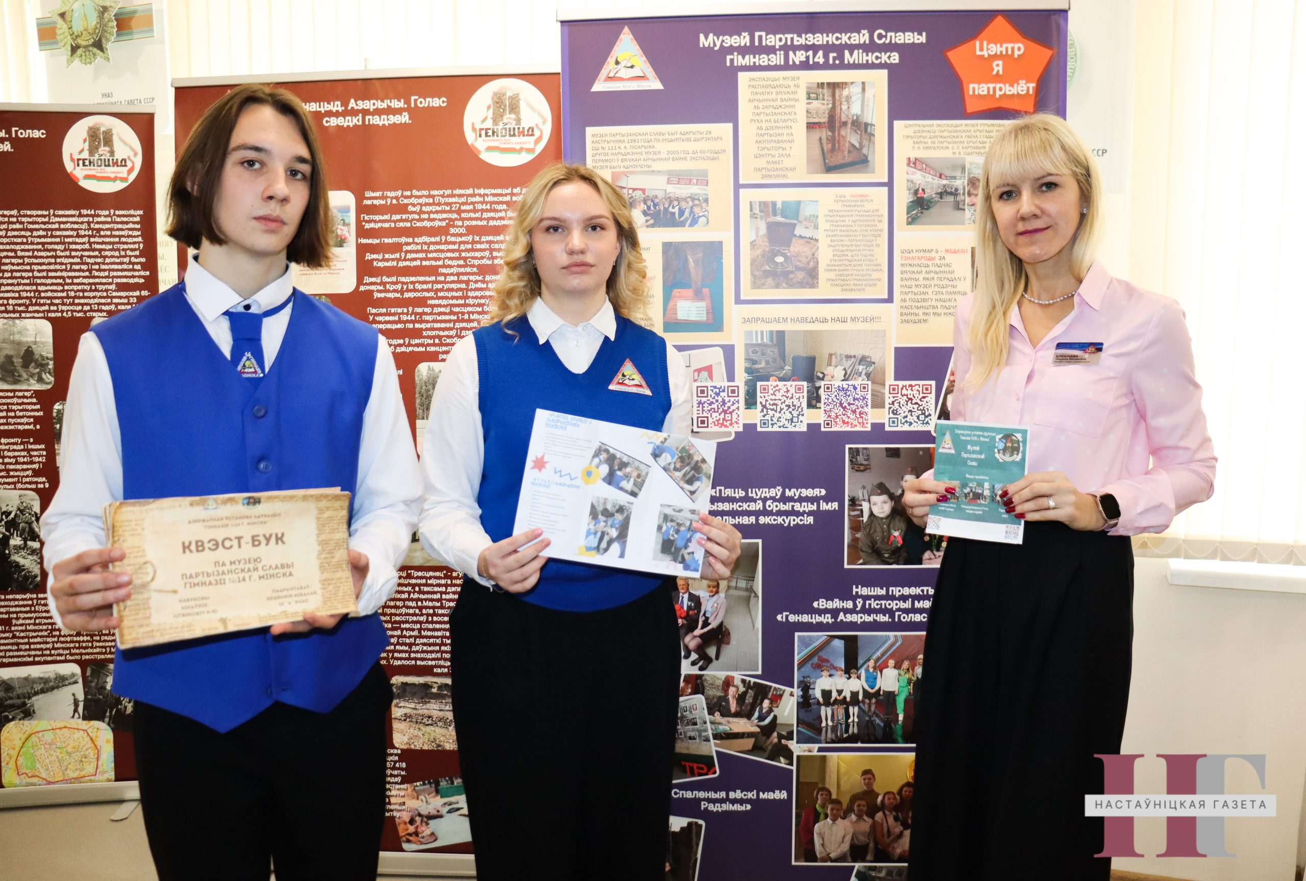 Настаўніца гісторыі Таццяна Блешчава і вучань 11 класа 14-й гімназіі Мінска Мікалай Крайнюк запрасілі ўдзельнікаў круглага стала ў музей партызанскай славы на інтэрактыўныя краязнаўчыя заняткі, дзе прадставілі методыку стварэння квестбукаў. Гэта спецыяльна распрацаваныя даведнікі або сшыткі, якія змяшчаюць заданні, пытанні і маршруты для самастойнага вывучэння пэўнай тэмы.