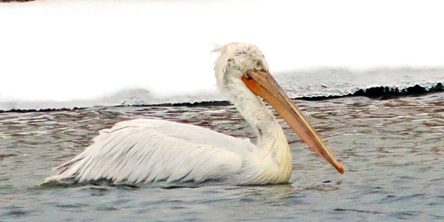Сустрэча з пеліканам прыпала на разгар цыклону “Даніэла”: ішоў то дождж, то снег. Пелікан стойка пераносіў цяжкасці беларускай зімы: ніякай аслабеласці ў птушкі арнітолагі не заўважылі.