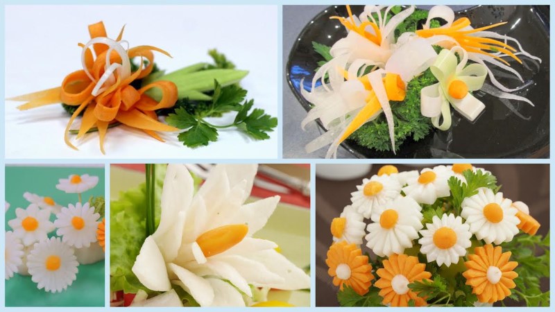 Узоры на агародніне і садавіне выразаюцца адмысловымі інструментамі. Асноўны інструмент майстра — тайскі нож. Існуюць таксама карбовачныя нажы (вострыя, V-падобны, круглыя, шырокія і вузкія), нуазетка (нож-выемка) круглай і авальнай формы і інш. Але, па словах Жанны Дзятлавай, можна зрабіць любы ўзор і простым кухонным нажом з тонкім і эластычным лязом. Галоўнае — жаданне, крыху цярпення і, вядома ж, фантазія!