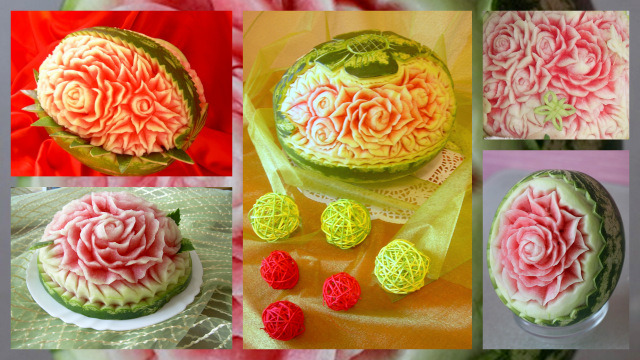 “Усё змянілася, калі я, жывучы часова ў Латвіі, выпадкова ўбачыла відэаролік, дзе навучэнцаў кулінарнага вучылішча вучылі выразаць ружу на кавуне. Я тут жа разрэзала кавун, на яго палавіне паўтарыла звычайным нажом тую ружу і пабегла да сяброўкі пахваліцца. Тады мне здавалася, што я выразала самую дасканалую кветку ў свеце! Так радавалася, што ў мяне атрымалася! Потым адна з сябровак падарыла мне на дзень нараджэння набор нажоў для карвінгу. З таго дня я і захварэла ім па-сапраўднаму. Глядзела відэаролікі, чытала дапаможнікі і выразала, выразала, выразала… Літаральна з усяго, што траплялася мне ў рукі. Я не выбіраю матэрыялы — выразаю на ўсім, што можна рэзаць. Эксперыментавала нават на шакаладзе — і на цэльным кавалку, і нават на шакаладных цукерках”.