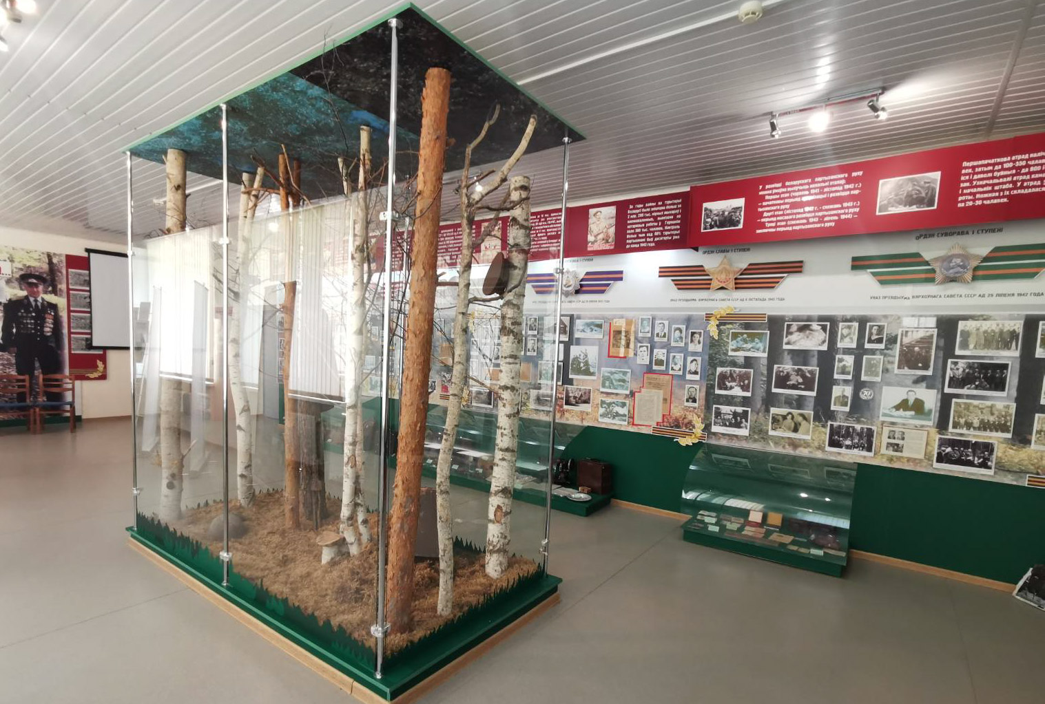 — Цэнтральнае месца ў музейнай зале займае макет партызанскай зямлянкі, а галоўная экспазіцыя прысвечана дзейнасці партызанскай брыгады імя Сталіна, якая ў гады вайны вяла барацьбу на тэрыторыі Дзяржынскага раёна, — адзначае кіраўнік музея настаўніца гісторыі Надзея Літвіновіч. — У апошнія гады музей папоўніўся дакументамі і сведчаннямі пра пасляваеннае жыццё ветэранаў. Вы бачыце здымкі сустрэч былых партызан у Бакінаўскім лесе Дзяржынскага раёна, на Кургане Славы, у Брэсцкай крэпасці, падчас урачыстага адкрыцця музея.
