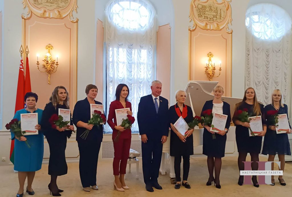 Мікалай Башко ўручыў ганаровыя граматы галоўнага ўпраўлення па адукацыі выхавальніку дашкольнай адукацыі дзіцячага сада № 5 Любані Ірыне Ахрамейка, намесніку дырэктара па вучэбнай рабоце сярэдняй школы № 1 Лагойска Вользе Галушцы, настаўніцы хіміі Жодзінскай жаночай гімназіі Валянціне Гранстрэм, настаўніцы хіміі сярэдняй школы № 4 Чэрвеня Галіне Равінай, настаўніцы пачатковых класаў Рубяжэвіцкай сярэдняй школы Стаўбцоўскага раёна Ніне Рагозе, метадысту Нясвіжскага раённага вучэбна-метадычнага кабінета Марыне Скрабец, педагогу дадатковай адукацыі цэнтра творчасці дзяцей і моладзі Смалявіцкага раёна Наталлі Шведавай і настаўніцы беларускай мовы і літаратуры сярэдняй школы № 4 Дзяржынска Святлане Шпакоўскай.