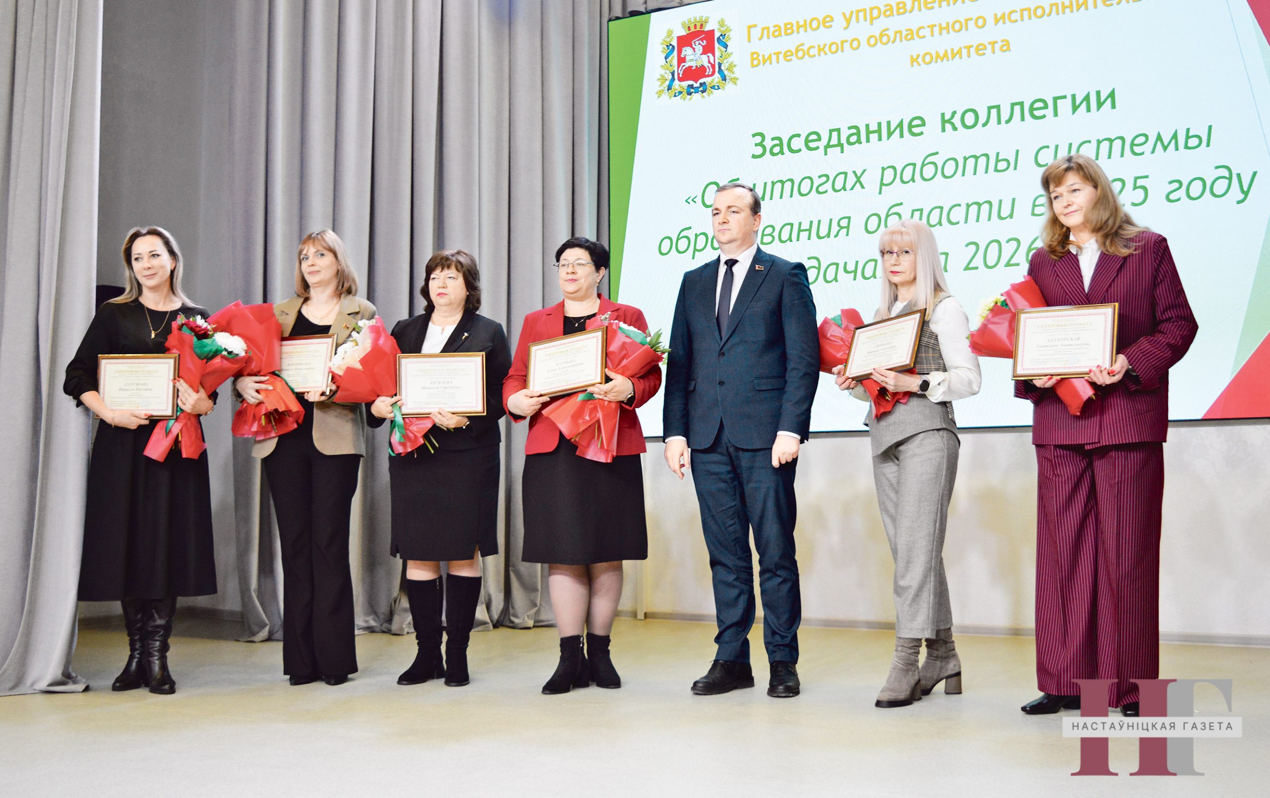На пасяджэнні калегіі лідарам сістэмы адукацыі Віцебшчыны ўручылі ўзнагароды — ганаровыя граматы Міністэрства адукацыі і Віцебскага аблвыканкама, падзякі міністра адукацыі і старшыні Віцебскага аблвыканкама, ганаровыя граматы галоўнага ўпраўлення па адукацыі аблвыканкама. Начальнік аддзела па адукацыі Пастаўскага райвыканкама Павел Трава атрымаў ганаровую грамату галоўнага ўпраўлення па адукацыі аблвыканкама і грашовы сертыфікат на суму 20 тысяч рублёў за перамогу ў намінацыі “Лепшае структурнае падраз­дзяленне гарадскіх, раённых выканаўчых камітэтаў, адміністрацый раёнаў Віцебска, якое ажыццяўляе дзяржаўна-ўладныя паўнамоцтвы ў сферы адукацыі”. Супольнасць выдатнікаў адукацыі Рэспуб­лікі Беларусь папоўнілі настаўнік працоўнага навучання і чарчэння сярэдняй школы № 8 Оршы Андрэй Паўлаў і настаўніца гісторыі і грамадазнаўства Азярэцкай сярэдняй школы Глыбоцкага раёна Зоя Рубніковіч.