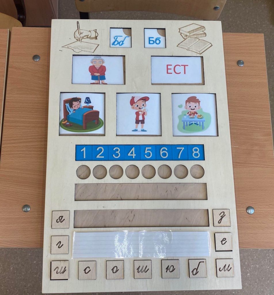 — Планшэт быў выкананы з фанеры. Асноўная яго частка выразана з дапамогай лазернага ЛПК гравіравальнага станка і склеена з асновай. У гэтым нам дапамагалі настаўнікі працоўнага навучання школы Арцём Корткі і Васіль Нявера, — расказала А. Іванюшына. — Напаўненне (літары, лічбы) планшэта часткова зроблена педагогамі на ўроках інфарматыкі і надрукавана пры дапамозе 3D-прынтара з пластыку і з фанеры (пры дапамозе гравіроўкі і лазернай рэзкі).