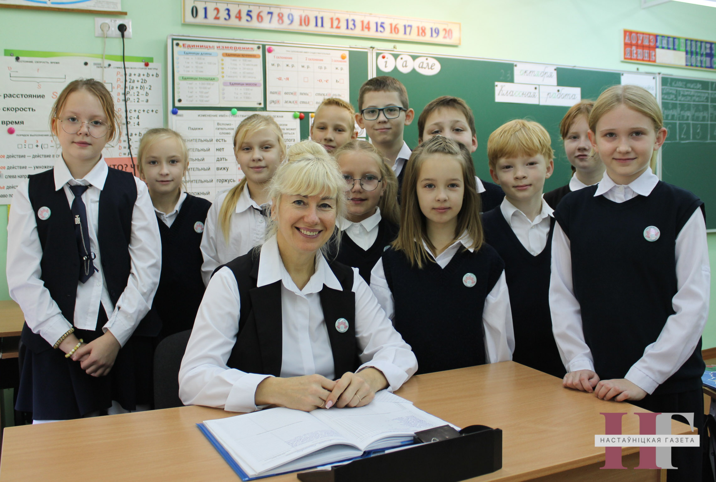 Адчуць атмасферу, якая пануе ў яе класе, удалося яшчэ да афіцыйнага знаёмства з педагогам. На перапынку чацвёртакласнікі Марыны Іванаўны дружна дапамагалі аднакласніцы з творчай работай, прычым так захоплена, што нават гасцей на парозе класа заўважылі не адразу.
