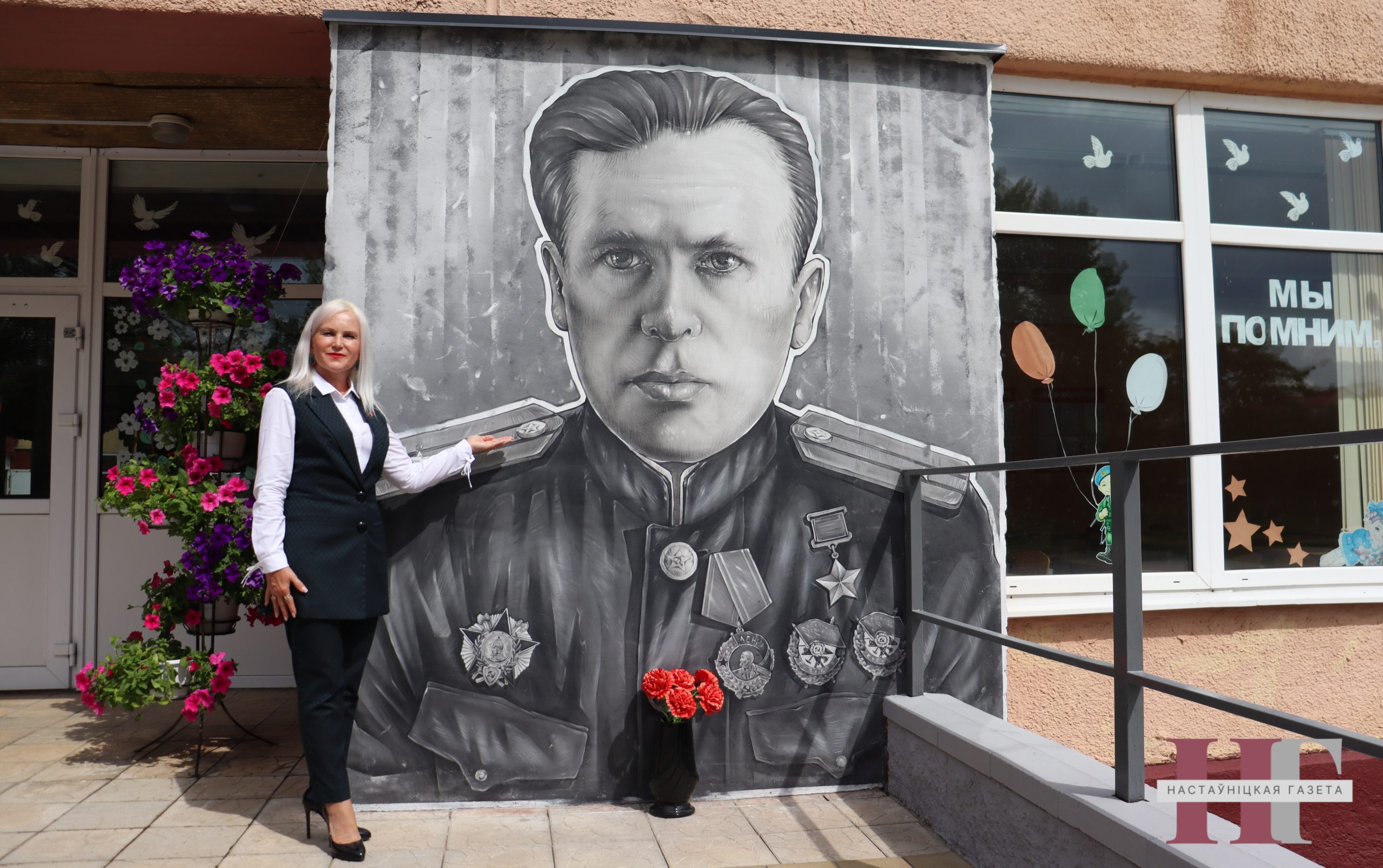 Усе, хто заходзіць на тэрыторыю гімназіі, ужо здаля ловяць на сабе пранізлівы погляд Героя Савецкага Саюза. Пры набліжэнні да выявы становіцца зразумелым, чыё імя з гонарам носіць установа. Гэта да многага абавязвае як педагагічны калектыў, так і вучняў.
