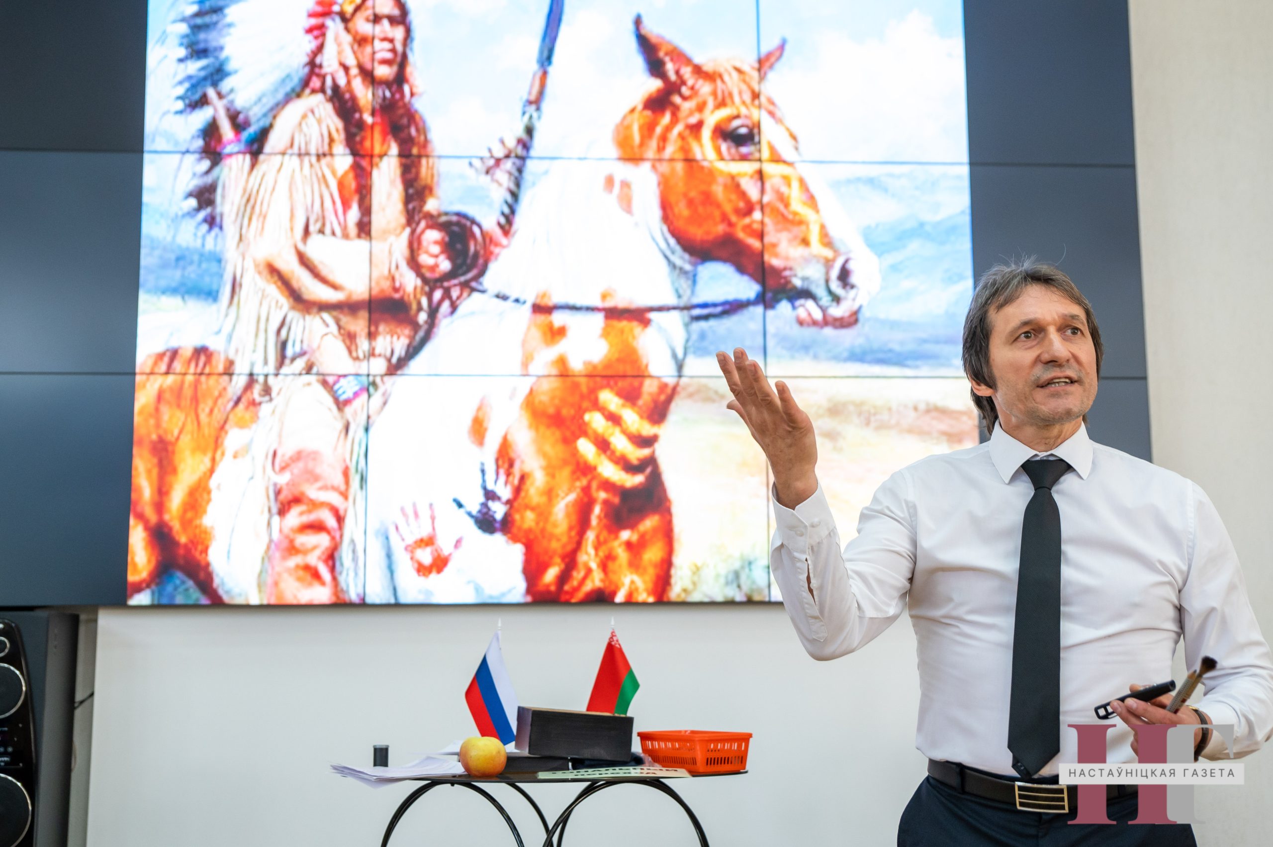 За часам, праведзеным разам, і беларускія педагогі, і расійскія нястомна рабілі паметкі ў сваіх айфонах ці запісных кніжках. Мадэратарам сустрэчы стала Інеса Зубрыліна, прарэктар па вучэбнай рабоце Акадэміі адукацыі, пераможца конкурсу “Настаўнік года Рэспублікі Беларусь — 2011”.