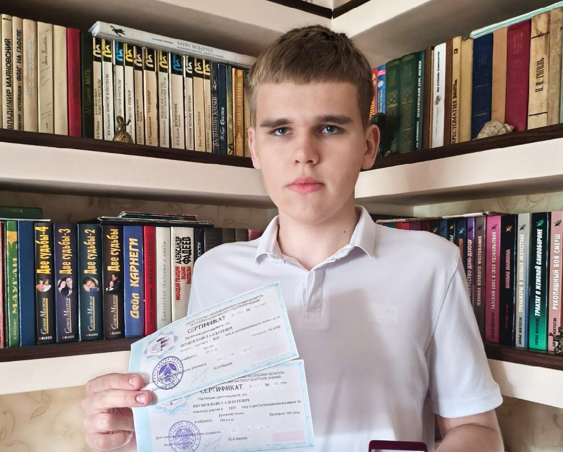 — Атрымаць 100 балаў на ЦЭ і ЦТ рэальна, калі дбайна рыхтавацца. Я кожны дзень шмат працаваў самастойна, рашаў розныя задачы, набываў вопыт. Вельмі ўдзячны за падтрымку бацькам. А яшчэ ўсім сваім педагогам, асабліва настаўніцам фізікі Аксане Мікалаеўне Ларчанка, матэматыкі Валянціне Мікалаеўне Шкробавай і рускай мовы і літаратуры Святлане Барысаўне Касмачовай. Экзамены і тэсціраванне не выклікалі цяжкасцей. Цяжкай была адна задача па фізіцы, але паразважаў і справіўся. Разлічваў, што балы будуць даволі высокімі, аднак тры стабальныя сертыфікаты сталі прыемнасцю. Цяпер з нецярпеннем чакаю паступлення. Мару стаць студэнтам БДУІР, звязаць жыццё з праграмаваннем, — падзяліўся выпускнік.