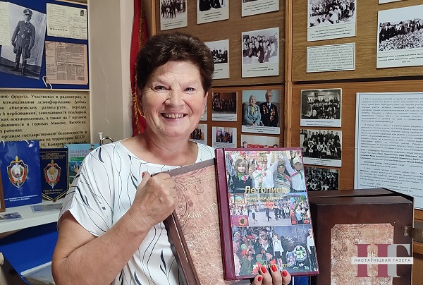 — Музей — жывы арганізм. Тут вядуцца альбомы “Гордасць школы”, “Нашы выпускнікі”, “Мае бацькі — выпускнікі”, улік настаўніцкіх дынастый, сямейных пар. Дзеці разам з класнымі кіраўнікамі вядуць пошукавую работу. “Гісторыя ў асобах” — наш дэвіз, а мэта — захаваць успаміны пра лю­дзей, — дзеліцца настаўніца.