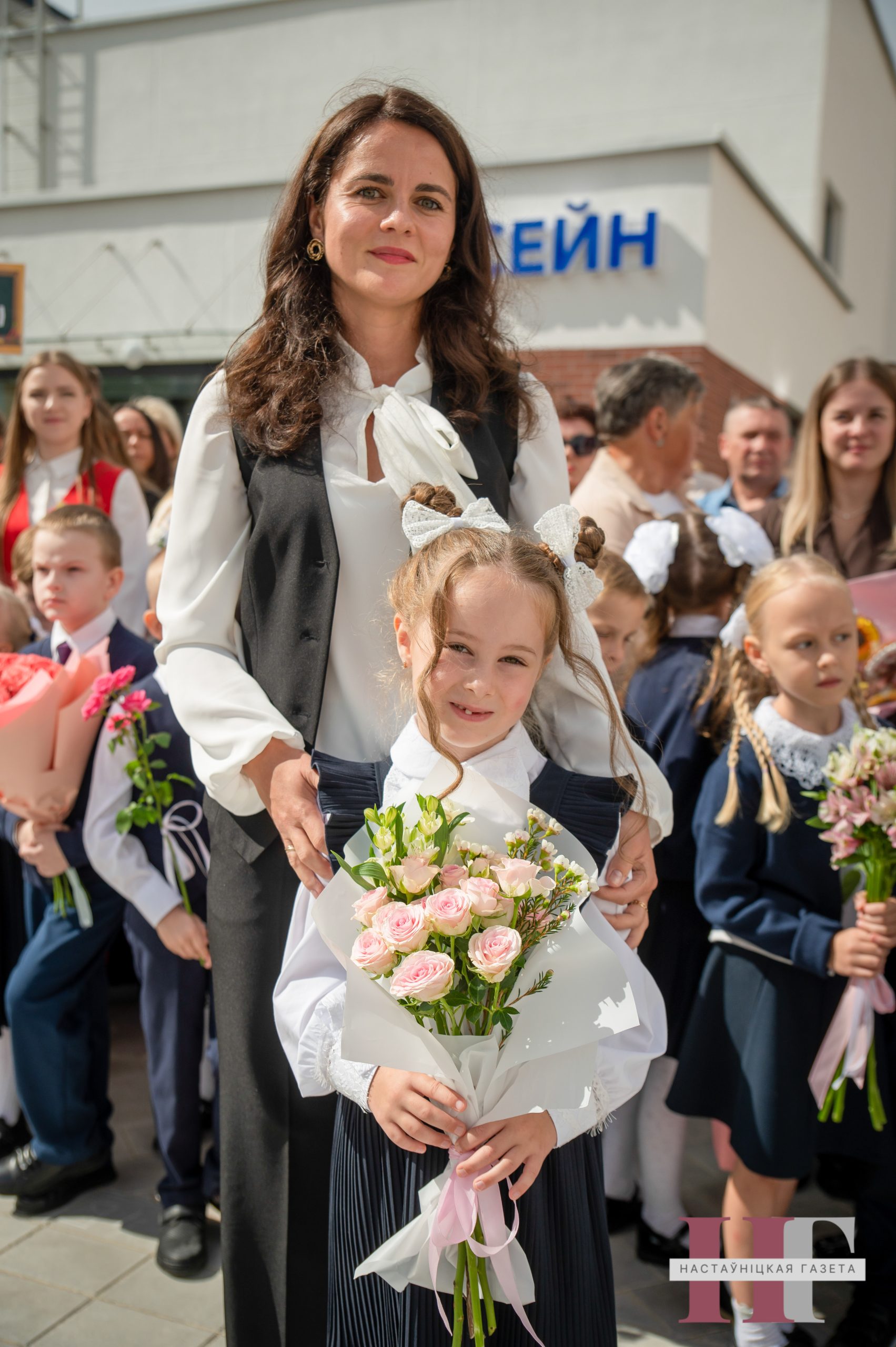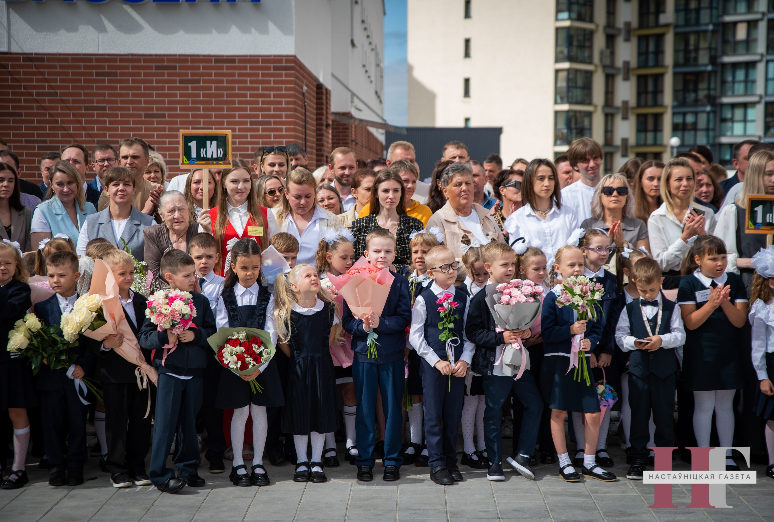 Торжественная линейка в честь 1 сентября собрала во дворе школы более двухсот первоклассников и еще пару сотен родителей. Кстати, первоклашек в школе больше, чем других учащихся, так как эта параллель самая многочисленная и насчитывает 10 первых классов от “А” до “К”. А из окон высоток за праздником с любопытством наблюдали жильцы. Среди почетных гостей — министр образования Андрей Иванец и председатель Минского городского исполнительного комитета Владимир Кухарев.