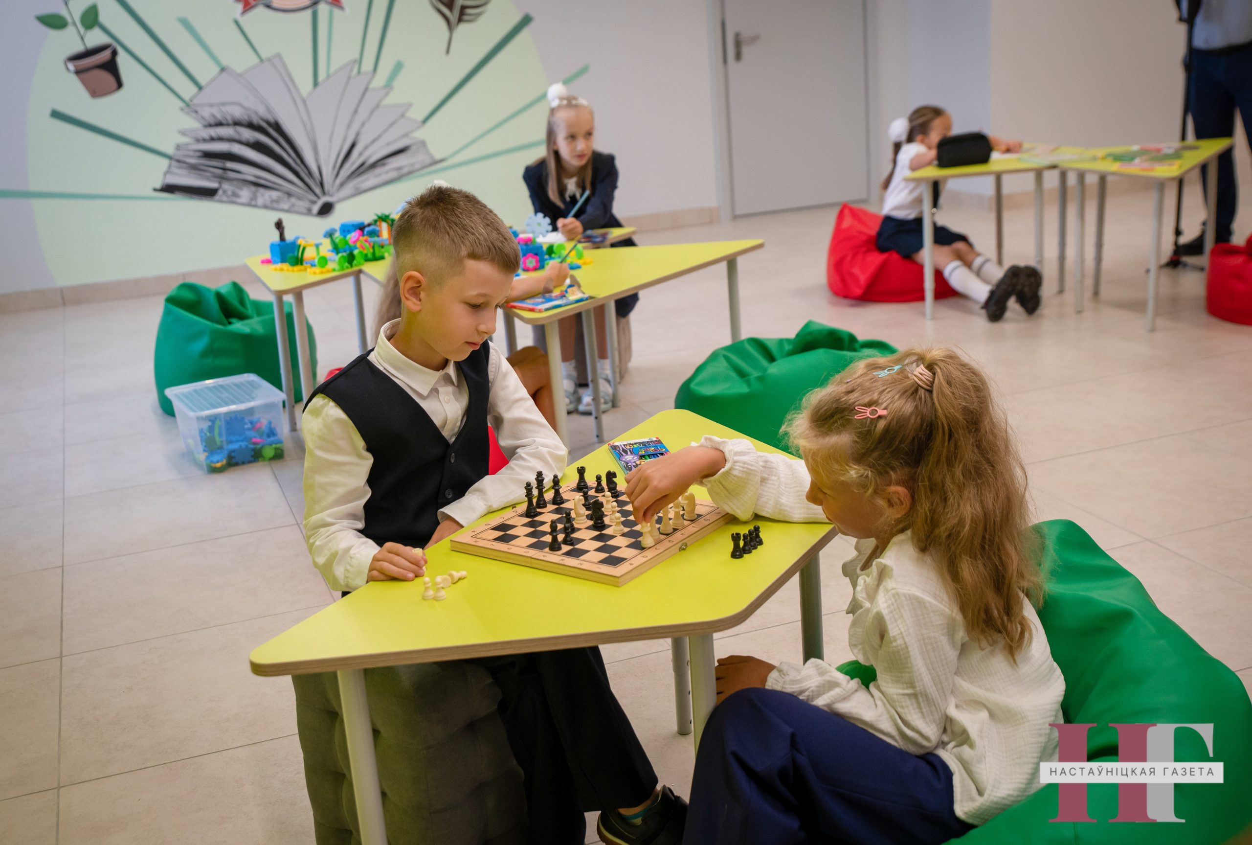 В фойе есть зоны для отдыха с мягкими креслами, а также тематическими уголками. Например, в фойе на стене 2 этажа изображен поезд. Такой декор здесь не случаен: в школе открылся класс железнодорожной направленности. Ученики 5 “А” на факультативных занятиях будут знакомиться с азами транспортной отрасли, узнавать историю развития железной дороги в Беларуси.