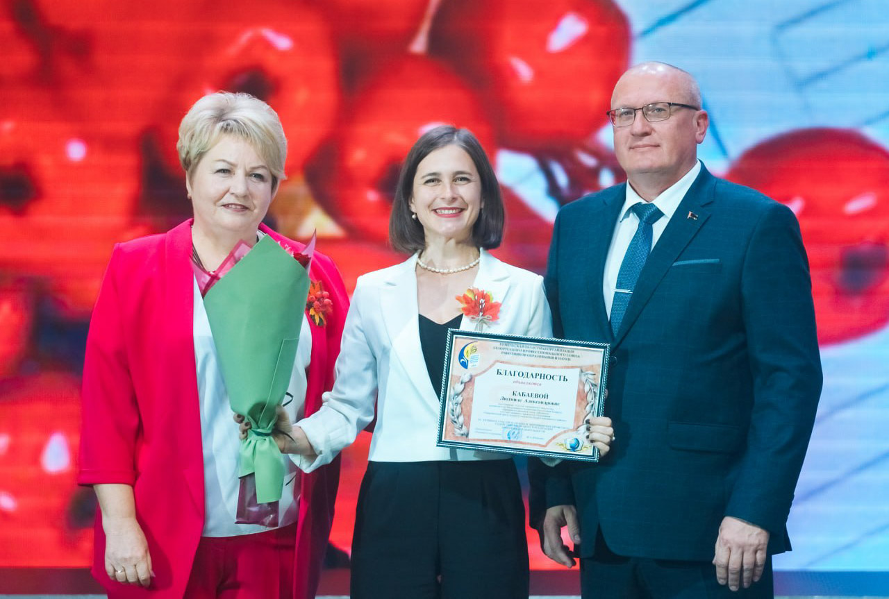 Лучших в своем деле отметили нагрудным знаком Министерства образования «Отличник образования», его получили учитель русского языка и литературы гимназии Ветки Алла Кобзарь, директор Ереминской средней школы Гомельского района Галина Новикова, директор средней школы № 3 Наровли имени Героя Советского Союза А.Г. Корзуна Светлана Минчук, начальник отдела образования Речицкого райисполкома Светлана Лукинская, учитель трудового обучения Зборовской базовой школы имени К.Н. Осипова Рогачевского района Елена Чернявская, учитель белорусского языка и литературы Мозырского государственного областного лицея Валентина Шецко, заведующий отделением Гомельского государственного колледжа бытового обслуживания Марина Деревянко.