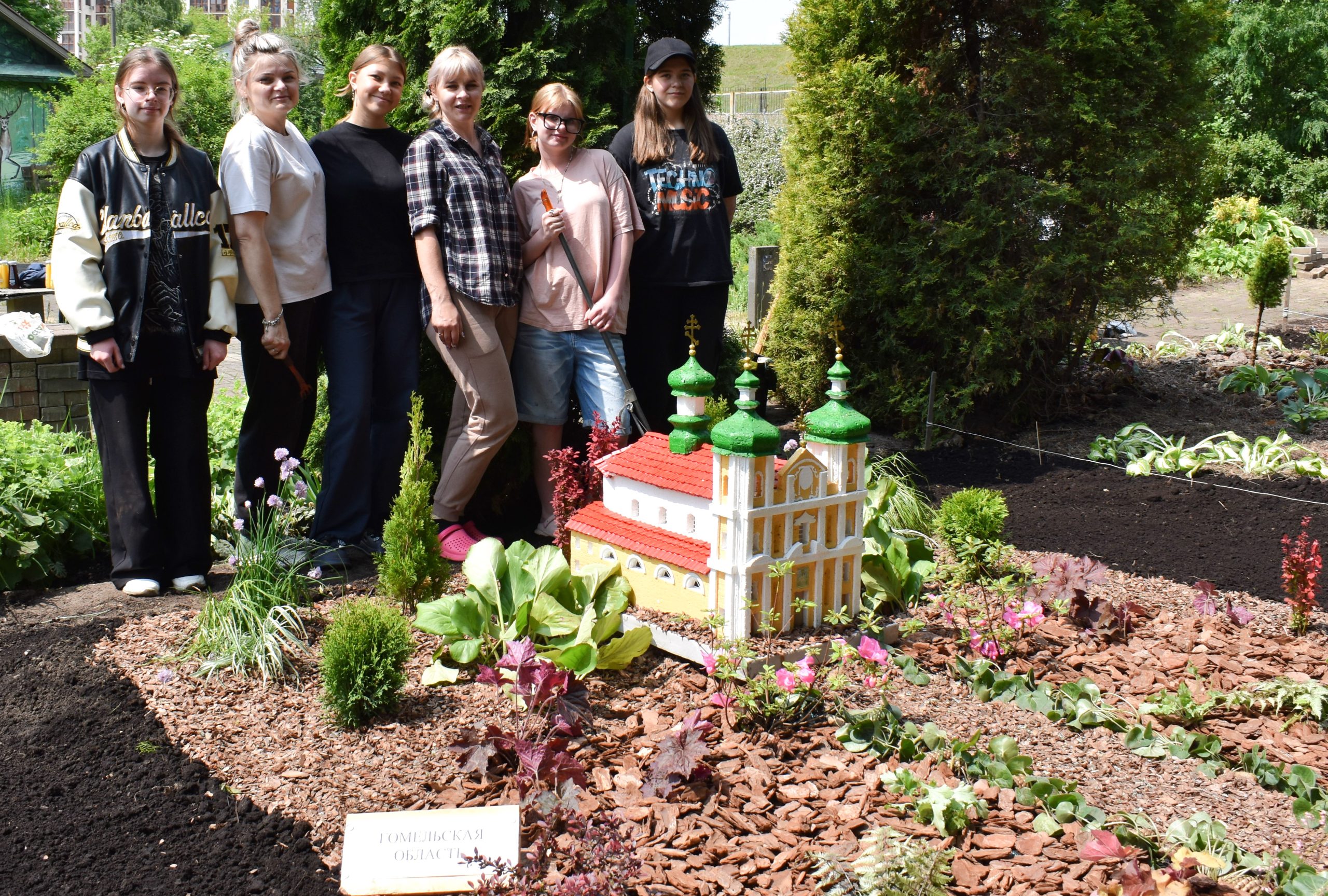 В июне этого года на территории нашего центра обустроена новая замечательная локация. Она появилась благодаря акции “Экопарк “Моя Беларусь”, в которой приняли участие победители областных и минского городского экологических конкурсов. Экопарк состоит из семи модульных цветников, каждый из которых украшают малые архитектурные формы, в миниатюре воссоздающие достопримечательности регионов.
