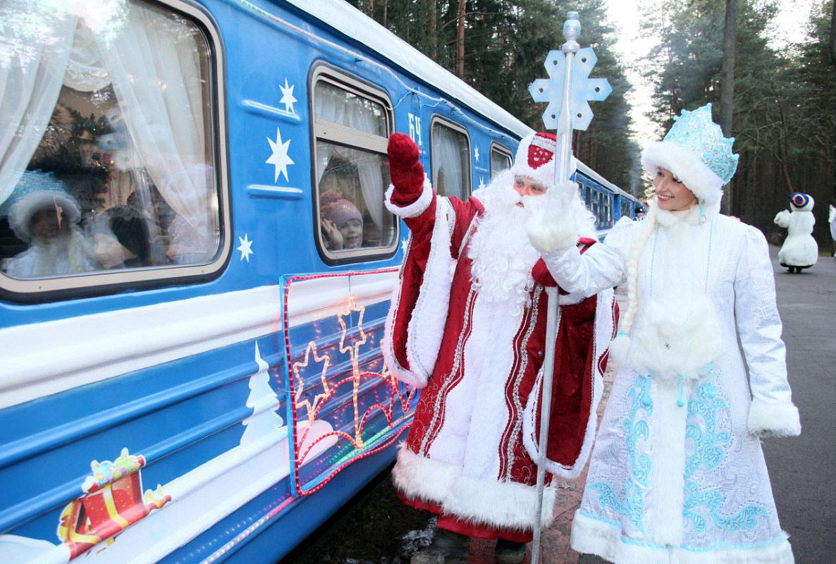 Юных пассажиров будут сопровождать герои любимых сказок и известных мультфильмов. В пути будет сделана остановка на станции Сосновый Бор, где покажут театрализованное представление с участием Деда Мороза и Снегурочки.