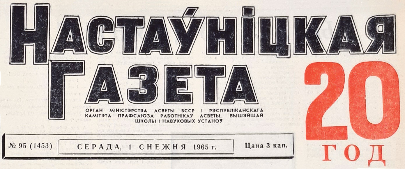 У тым жа годзе № 95 за 1 снежня на першай паласе ўпрыгожыла лічба 20. Так нашы калегі паведамілі чытачам, што вядучае педагагічнае выданне рэспублікі адзначае свой другі юбілей. І тут жа ў артыкуле “Сіла друкаванага слова” чытаем: “Для гісторыі 20 год, магчыма, невялікі прамежак часу. Для газеты ж, якая з першых крокаў свайго існавання стала блізкім сябрам і дарадчыкам шматтысячнай арміі байцоў педагагічнага фронту, 20 год — гэта няспынны рост, пастаяннае імкненне да творчай сталасці, да ўмацавання сувязі з шырокім колам чытачоў.