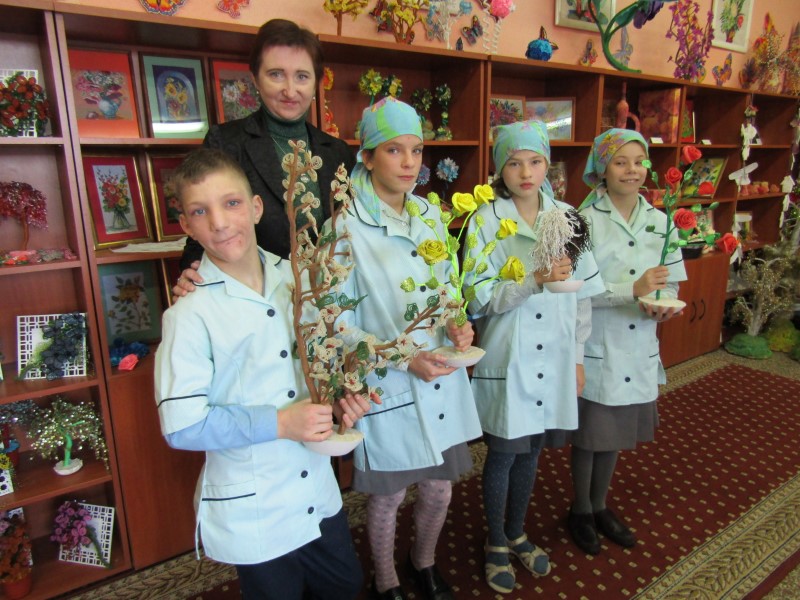 Настаўніца працоўнага навучання Людміла Уладзіміраўна Комлік вучыць дзяцей падчас урокаў, на факультатыве і гуртку не толькі азам вядзення гаспадарчых спраў, але і розным відам творчасці. “Згодна з вучэбным планам, на ўроках мы асвойваем з дзецьмі ручную вышыўку і апрацоўку тканіны (шыем на швейных машынках і ўручную), — адзначыла педагог. — Напрыклад, у 8 класе дзеці асвойваюць вышыўку глад­дзю, у 9 — вышыўку крыжыкам, у 10 класе — усе разнавіднасці вышыўкі. Праяўляю індывідуальны падыход да кожнага дзіцяці, бо ў кожнага свае інтарэсы і здольнасці. Дакладных рамак для творчасці няма. Мы робім дэкупаж, працуем у тэхніках ганутэль, квілінг, робім вітражы, вырабы з фаамірану, вышыўку стужкамі і пацеркамі, алмазную вышыўку, варым мыла, робім свечкі, вырабы з крэпіраванай паперы, з фетру, вяжам кручком. У фестывалі мастацкай творчасці “Вясёлкавы карагод” навучэнцы школы пастаянна атрымліваюць дыпломы на ўзроўні раёна, вобласці і рэспублікі ў кірунку дэкаратыўна-прыкладной творчасці. У 2019 годзе наша ўстанова адукацыі была адзначана дыпломам Міністэрства адукацыі за выставу работ выяўленчай і дэкаратыўна-прыкладнай творчасці”.