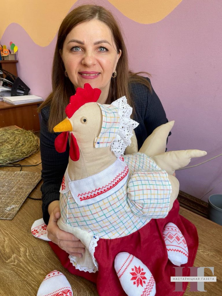 Ірына Мікалаеўна — з клеем у руцэ, укладвае на стале тугія скруткі сена спіраллю: прыкідвае, як зрабіць для курачкі стылізаванае гняздзечка. Ад задумы да ўвасаблення — шлях немалы. І курка няпростая — велікодная прыгажунька з вышыванкай. І будзе яна, пэўна што, несці яйкі няпростыя — велікодныя. Іх таксама ўжо ствараюць у майстэрні. Падчас размовы даведваемся, што тыя прыёмы дэкаратыўнай творчасці, якія асвоіла майстрыха і якім навучае выхаванцаў, даюць магчымасць усім праяўляць вельмі багатую фантазію. Пры тым улічваюцца розныя прапановы, творцы ідуць «няходжанымі сцежкамі» — а ўзровень майстэрства дае гарантыю, што сіламі талакі ўвасобленая задума стане творам мастацтва.