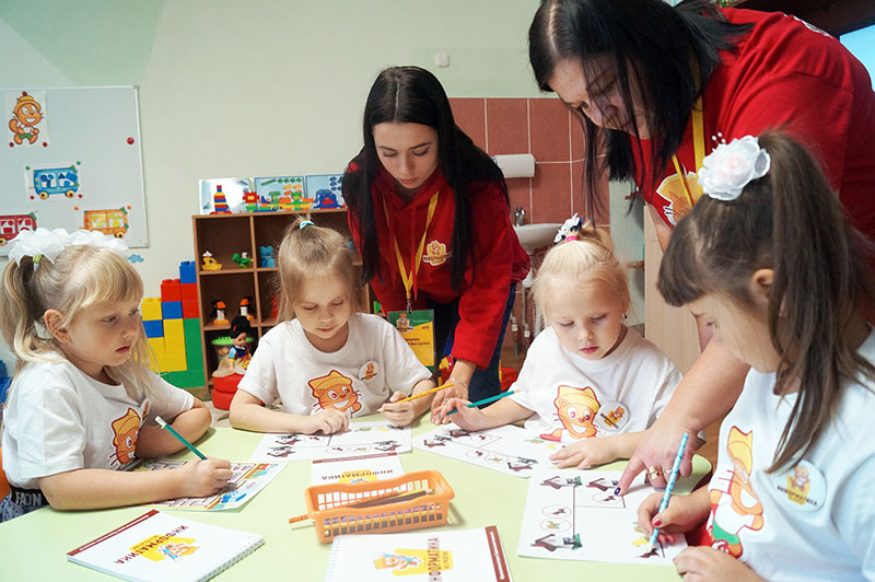— Дзеткі займаюцца два разы на тыдзень па 30 мінут па праграме праекта, — расказвае Алена Валынец. — Работа вядзецца ў гульнявой форме. Дзеткі рашаюць лагічныя задачы і разгадваюць крыжаванкі, пішуць графічныя дыктоўкі і канструююць з LEGO. Тэмы заняткаў: “Дакладна — няправільна”, “Адмаўленне па аналогіі”, “Сапраўднае — ілжывае” і г.д. Усё гэта дапамагае фарміраваць у выхаванцаў лагічнае мысленне, павышае іх інтэлектуальны ўзровень.