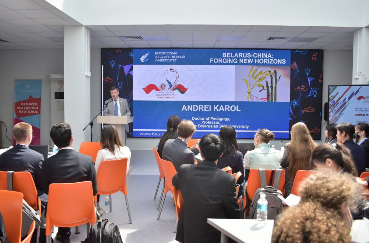 Центральным событием стало эвристическое занятие «Мосты перспектив», которое провел для белорусских и китайских студентов ректор БГУ Андрей Король.