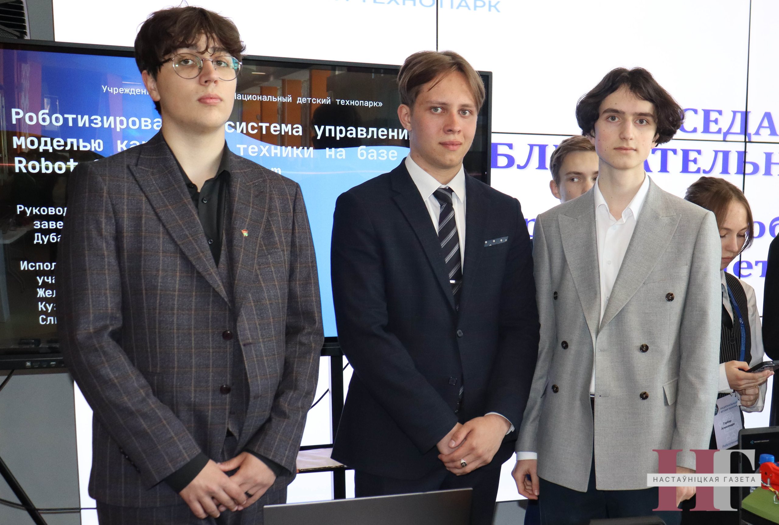 Учащиеся Национального детского технопарка Денис Железняков, Арсений Кузнецов и Егор Слижевский выполнили проект «Роботизированная система управления моделью карьерной техники на базе Robot Operating Sistem» по заказу БелАЗа, сообщает корреспондент «Настаўніцкай газеты».